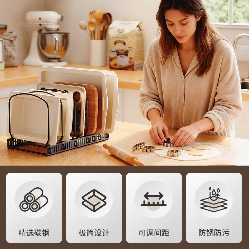 1 komad 29*19*15cm Nerđajući Čelični Organizator za Fioke u Kuhinji – Štedi Prostor za Tanjire i Činije, Ugrađeno Skladište za Pribor, Minimalistički Dizajn, Čista i Uredna Kuhinja, Kuhinjski Dodaci
