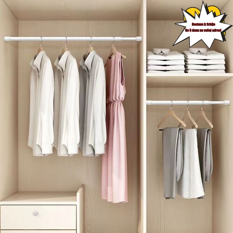 1 komad Teška Podesiva Šipka bez Bušenja – Zidni Višenamenski Vešalica sa Proširivom Dužinom (Podesiva Visina) za Orman, Kupatilski Peškir & Orman za Cipele – Štedi Prostor, Gvozdena Šipka, -Besplatna Instalacija