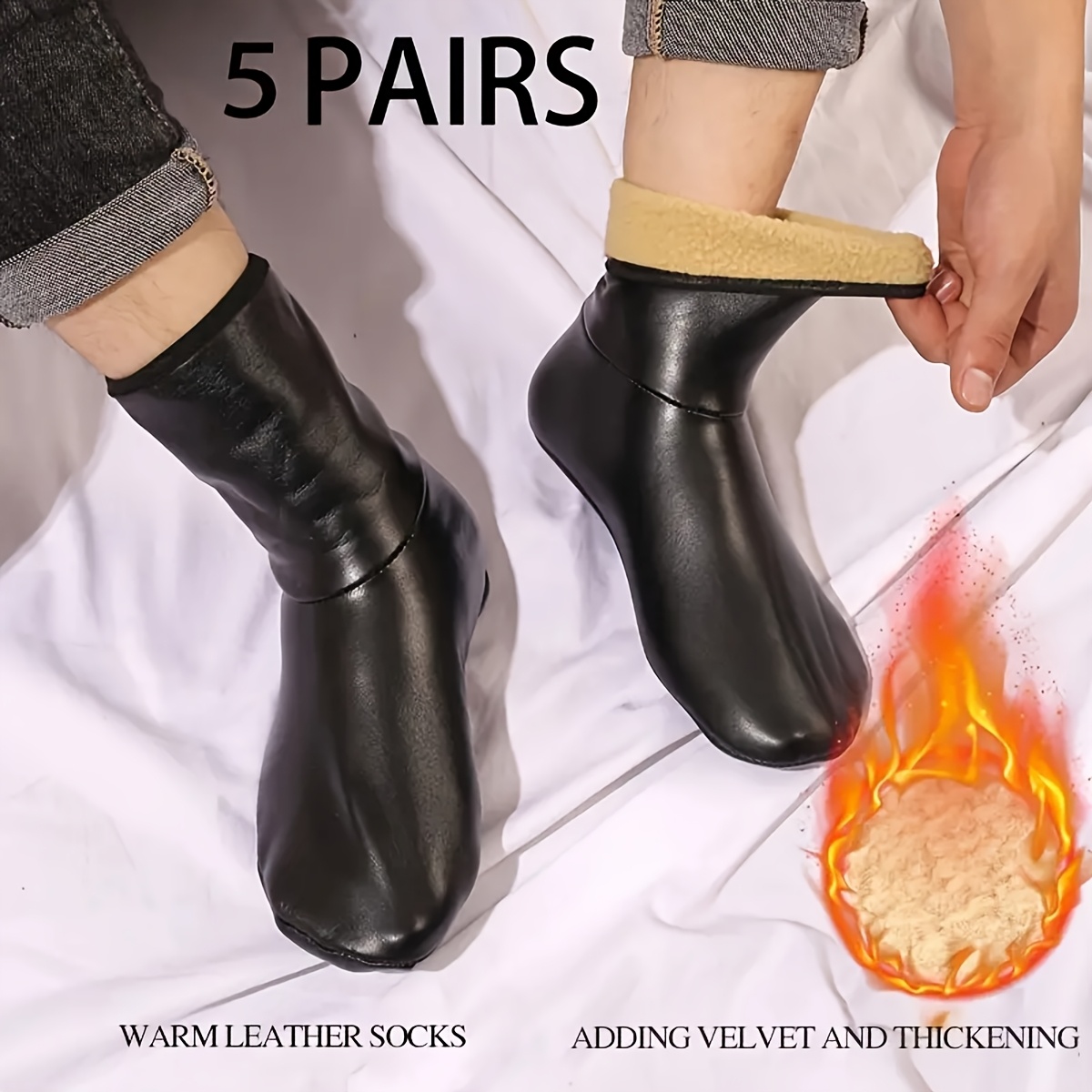 1 par/3 para/5 pari, uniseks PU kožne čarape za pod, tople i otporne na hladnoću, debeljane zimske čarape za žene, kućne PU kožne čarape sa dodatnim punjenjem za toplinu u jesen i zimu, čarape koje se mogu nositi uz cipele ili koristiti kao grejači za skijanje