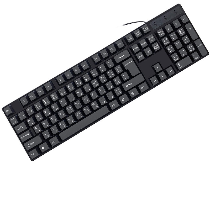 104-Tastirna Višejezična USB Žičana Tastatura sa Ruskom, Španskom, Arapskom i Francuskom Rasporedom – Plug & Play za PC/Laptop, Kompatibilna sa Kirilicom, Latinom i Arapskim Skriptama – Računarski Dodatak za Učenje Jezika i Višejezičnu Upotrebu