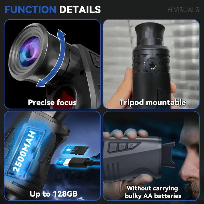 1080P HD Monokularni Teleskop sa 16x Digitalnim Zumom i Infracrvenim Noćnim Vidom, 3000mAh Baterija, 1.54” IPS Ekran, Punjiv, Pogodan za Lov, Planinarenje, Kampovanje, Izdržljiv Prenosni Uređaj za Noćni Vid