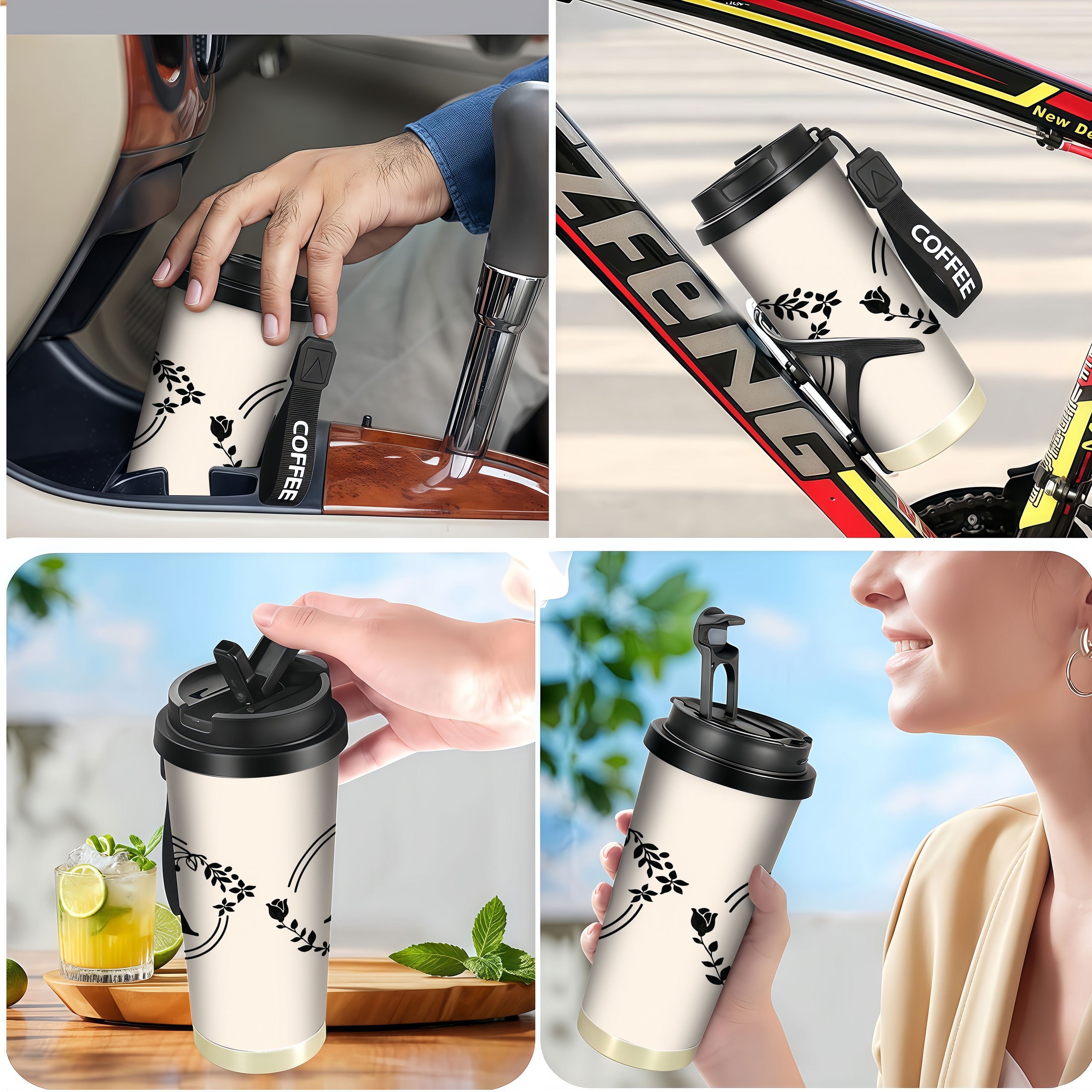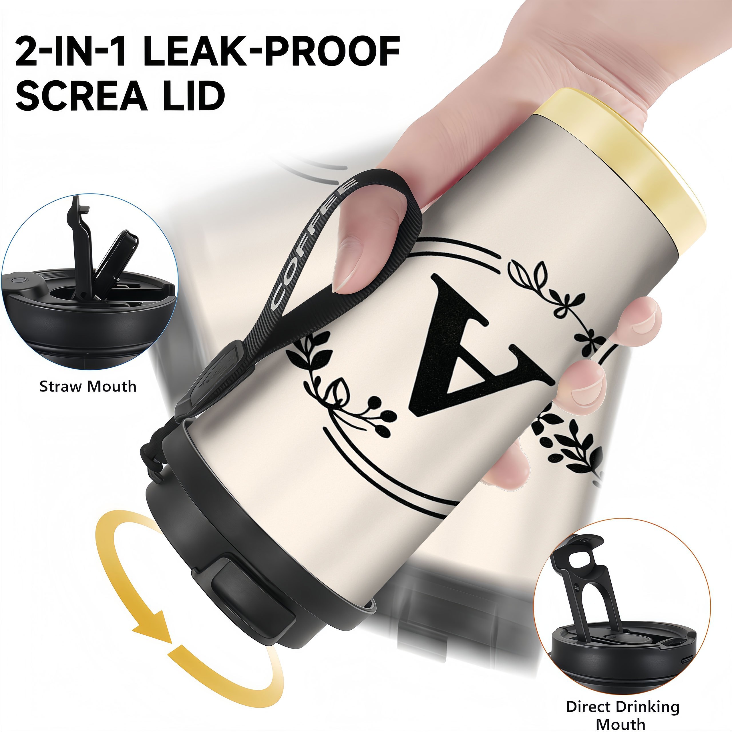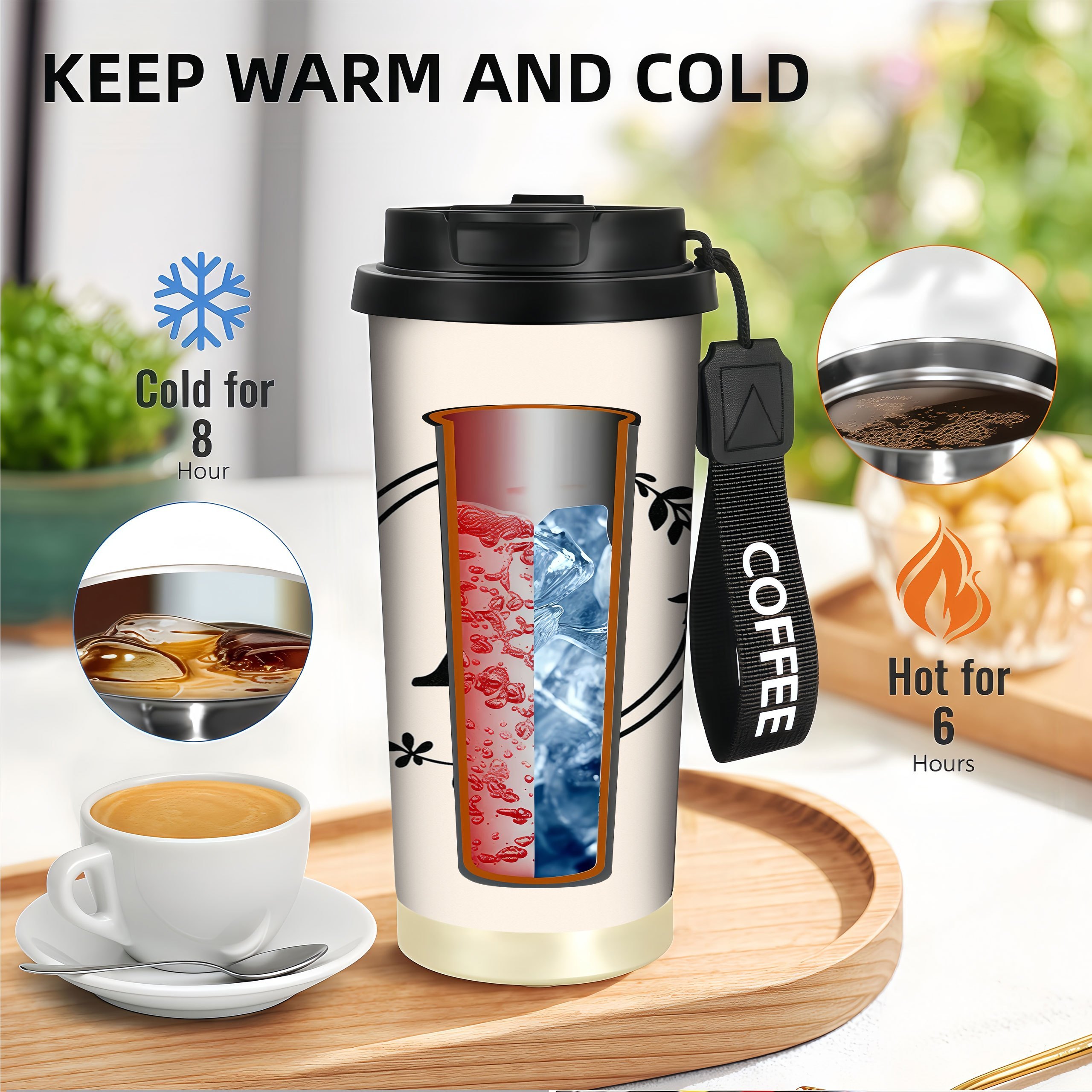 18oz Termo Čaša od Nerđajućeg Čelika sa Poklopcem – Nepropusna, sa Cvjetnim Uzorkom, Idealna za Kafe i Pića, Savršena za Kancelariju, Putovanja, Kampovanje, Poklon, Čaša za Kafe