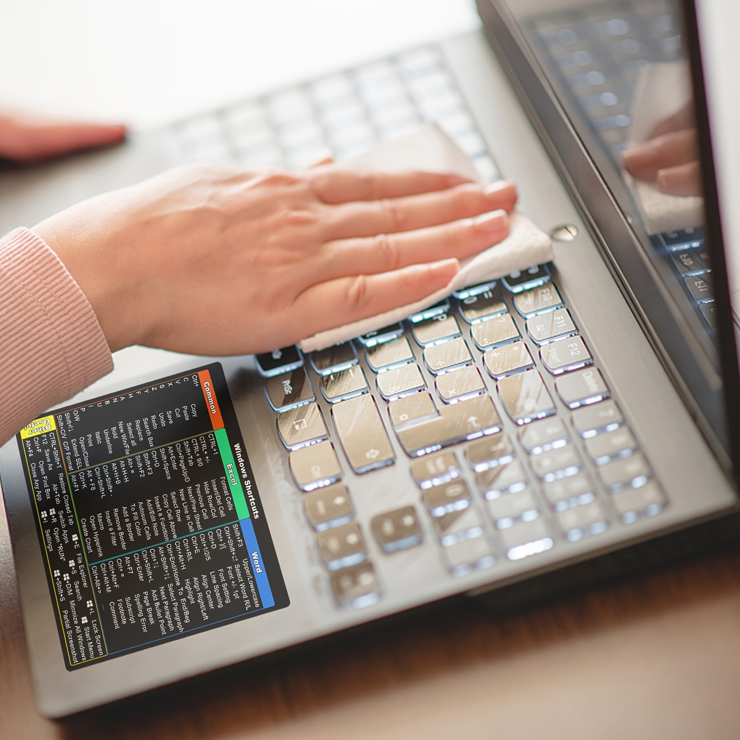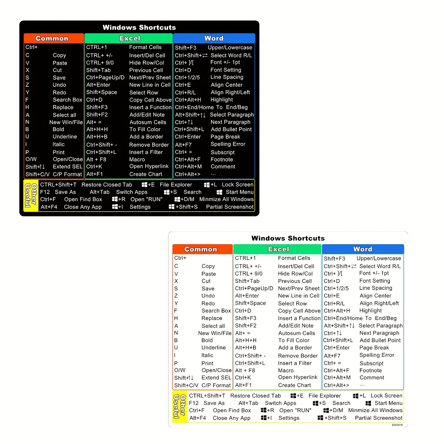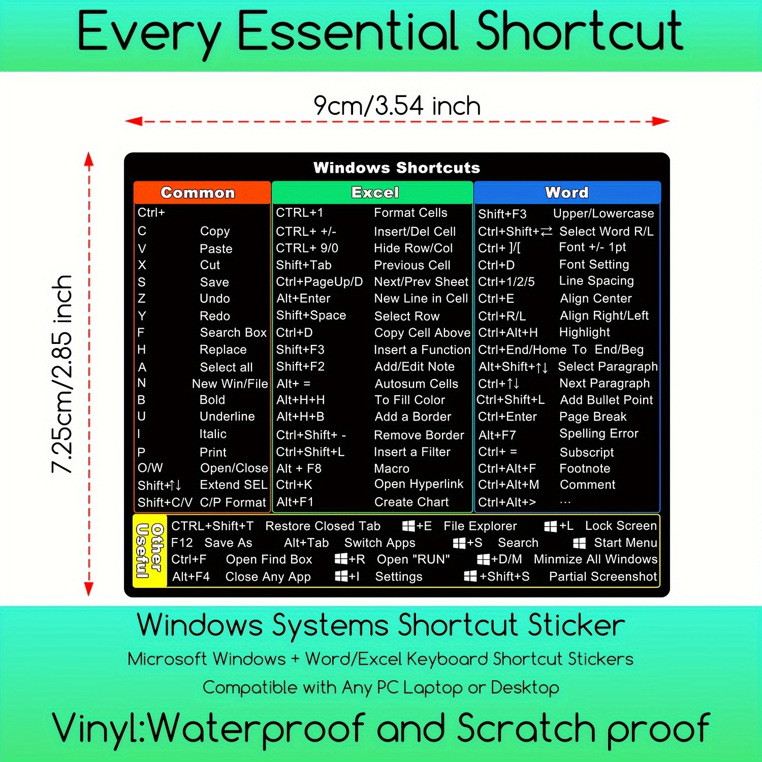 2 komada nalepnica za prečice za Windows 11/10 laptop, Microsoft Windows + Word/Excel brze referentne prečice na tastaturi, pogodno za bilo koji PC laptop ili desktop