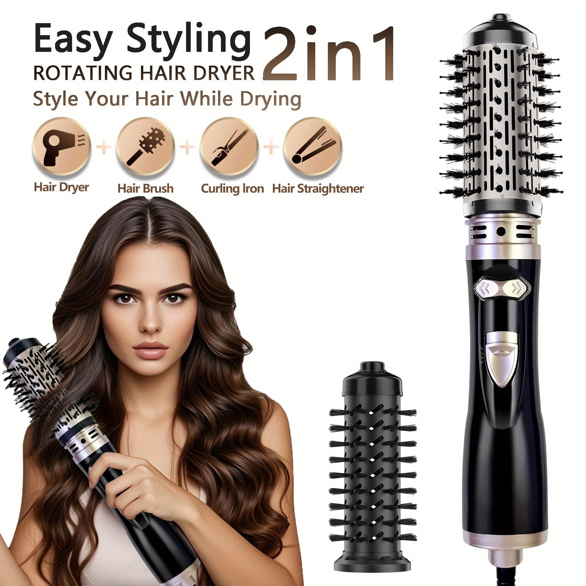 2-u-1 Četka za fenovanje, 1 set fen i četka sa pojačanim toplotnim vazduhom, 2-u-1 Rotirajuća višenamenska četka sa toplim vazduhom, Set za fenovanje i češljanje kod kuće