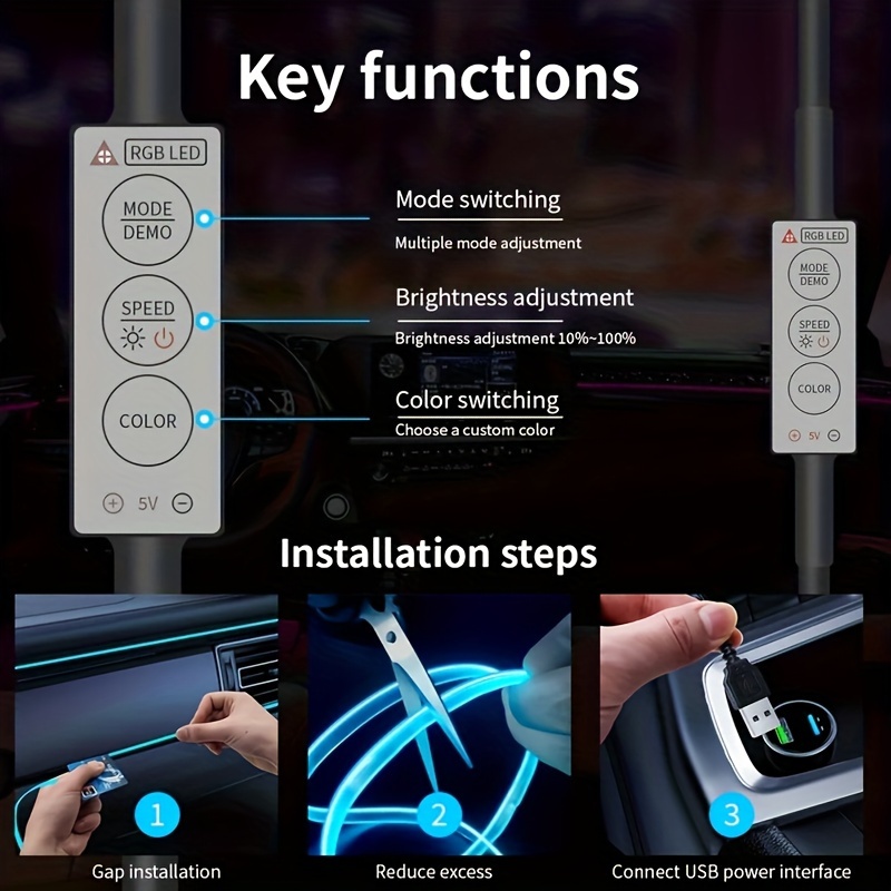 Možete izabrati između 22 različita režima za LED dekorativnu lampu za unutrašnjost automobila, sa 7-boja LED svetla, RGB neonom za fleksibilno ambijentalno osvetljenje, savršeno za kreiranje atmosfere žurke sa diodama, bez baterije.