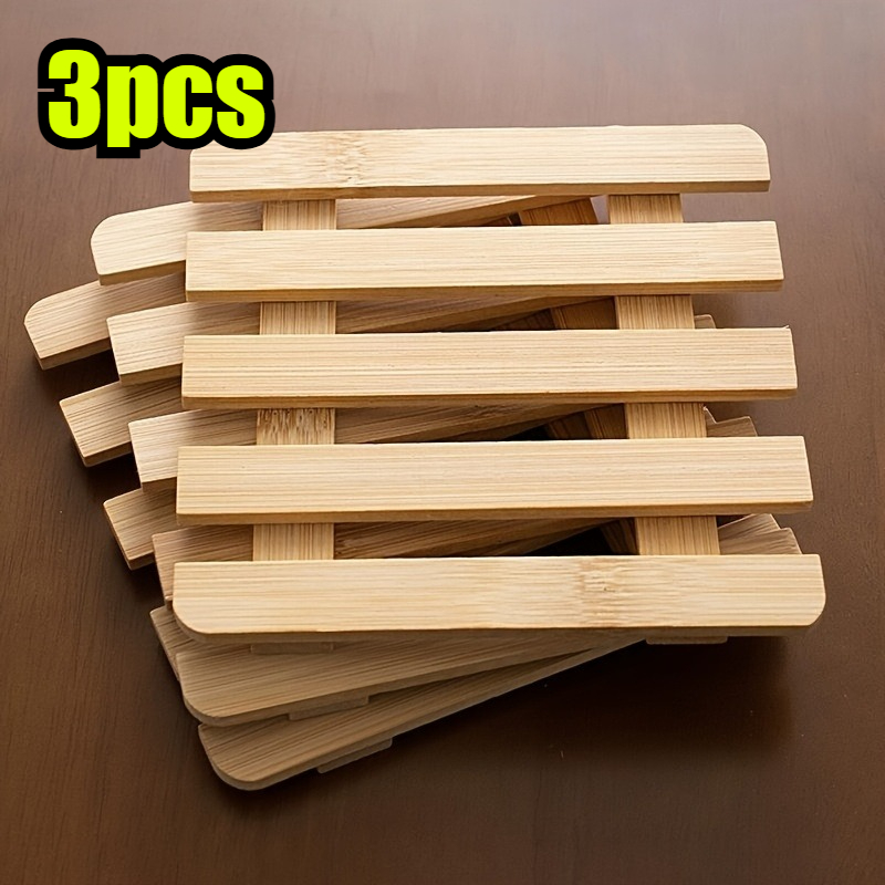 3 komada Jednostavna Bambus Otporna na Toplotu Podloga | Toplotno Izolaciona Podloga za Sto, Toplotno Izolaciona Podloga za Tanjire, Podloga za Pleštic, Napravljena od Bambusa i Orašastog Oraha