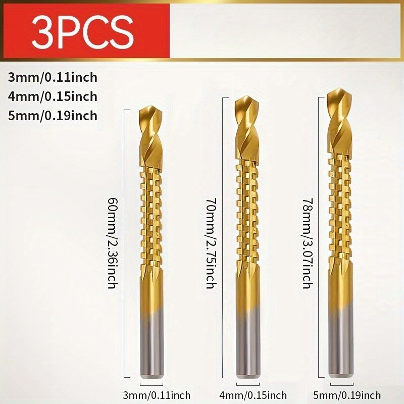 3 komada nazubljenih rotirajućih svrdla za žljebljenje – Višenamenski alati za sečenje i žljebljenje pogodni za drvo, metal, plastiku – Teška rotirajuća svrdla sa nazubljenjem za bušenje, žljebljenje, sečenje