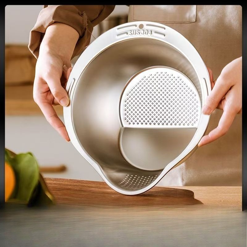 304 Posuda za pranje pirinča od nerđajućeg čelika, pogodna za hranu – Višenamenski cediljka za čišćenje povrća i voća, kuhinjska korpa za odvod za kućnu upotrebu