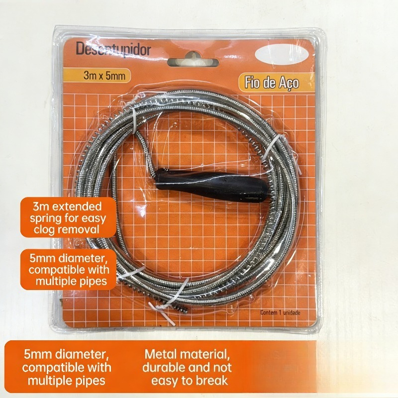 3M X 5Mm Fleksibilni Spirala za Odvod, Robusna Zidna Zmija za Čišćenje Začepljenja u Sudoperima, Kade i Tuš Kabinama