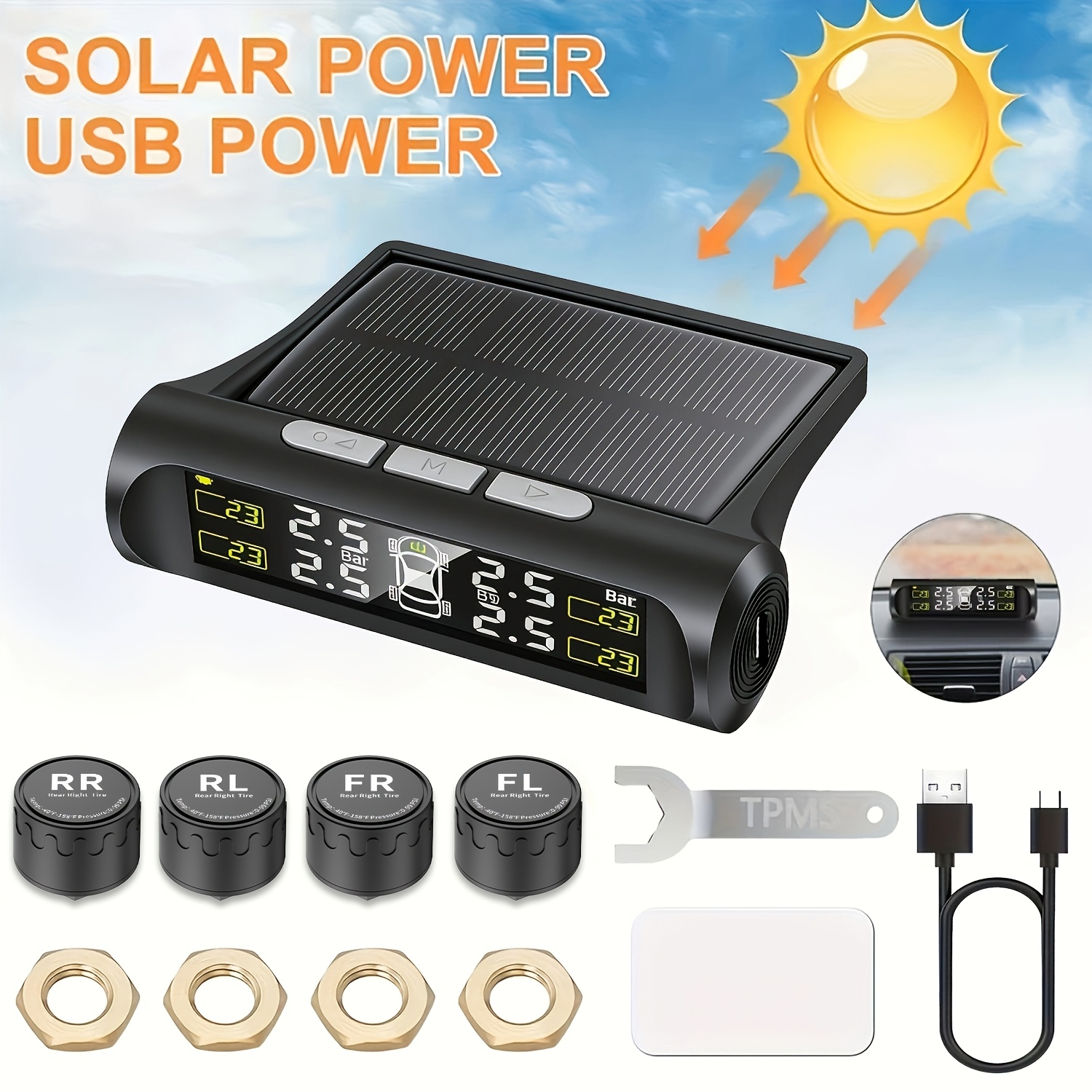 4 Eksterni Senzora Bežični Sistem za Praćenje Pritiska u Gumama | TPMS Kit sa Upozorenjima o Pritisku i Temperaturi u Realnom Vremenu, USB Punjenje, Solarno Napajanje, za SUV, MPV, Pikap & ORV, Upozorenje za Slabu Bateriju, Jednostavna Instalacija, Samo Uređaj Primamljiv
