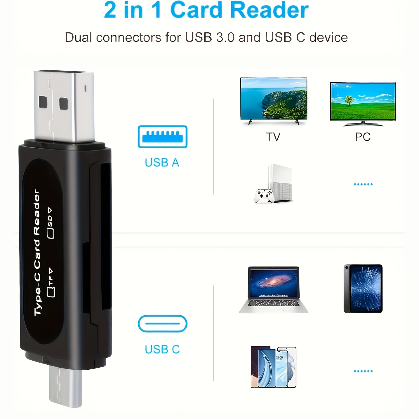 Ovaj uređaj ima 4-u-1 čitač SD kartica: Ovaj čitač kartica integriše standardne USB 3.0 i Type-c portove, što ga čini kompatibilnim sa svim računarima, laptopovima i pametnim telefonima sa Type-c portom koji podržavaju OTG funkciju.