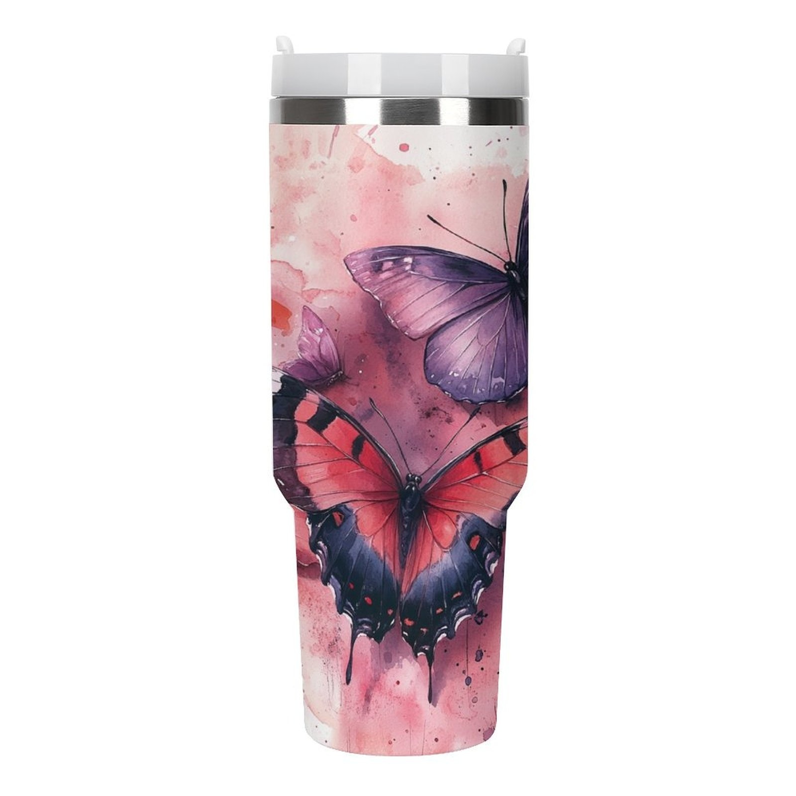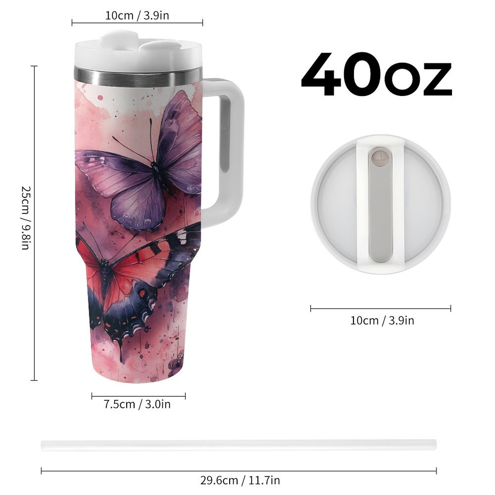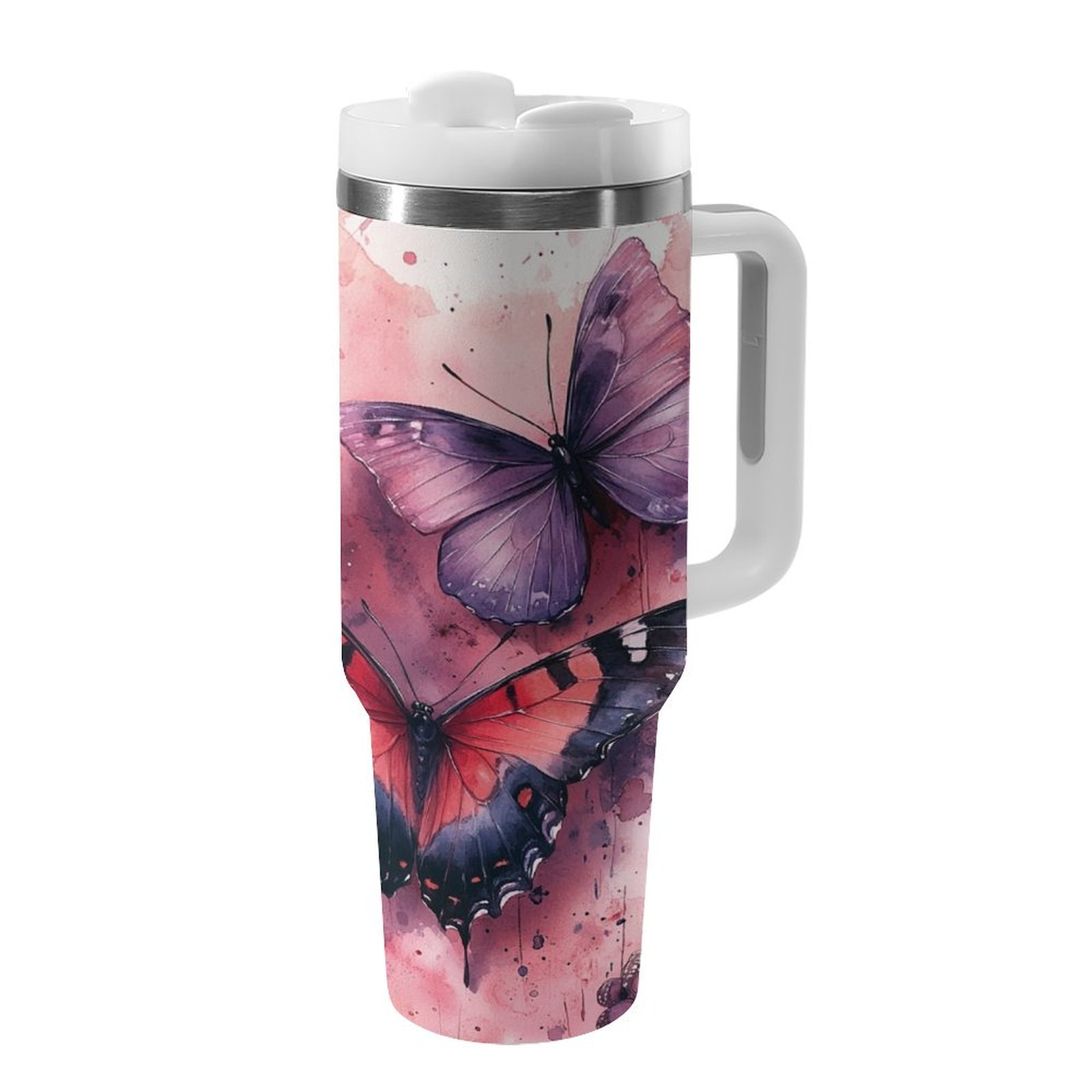 Jedan veliki 40oz čaša od nerđajućeg čelika sa slamkom i ručkom – dvostrana vakuumski izolovana čaša, nepropusna poklopac, elegantan dizajn sa leptirom i cvetom u roze/crvenoj/crnoj/beloj/sivoj – za kafu, čaj, teretanu, putovanje, kancelariju, kampovanje – idealan poklon za žene i muškarce, kancelarijski pribor, umetnički pribor, izdržljiva konstrukcija, višekratna čaša, entuzijasti za fitnes, prozirna čaša sa delfinom, čaša sa promenljivom bojom sa slamkom, putna čaša za kafu, Stanly čaša