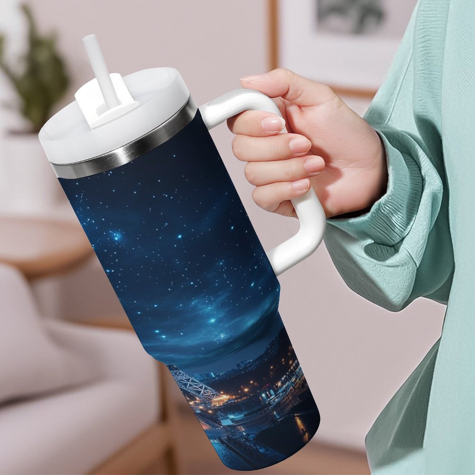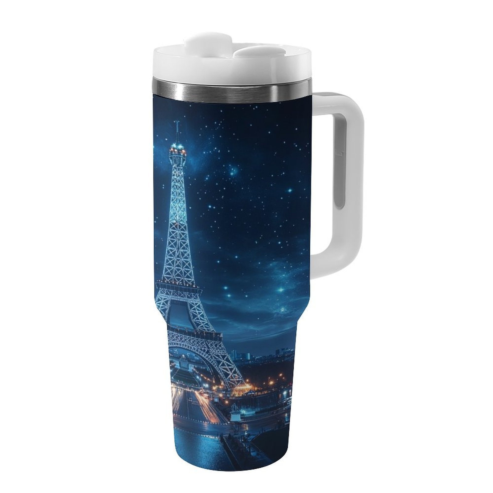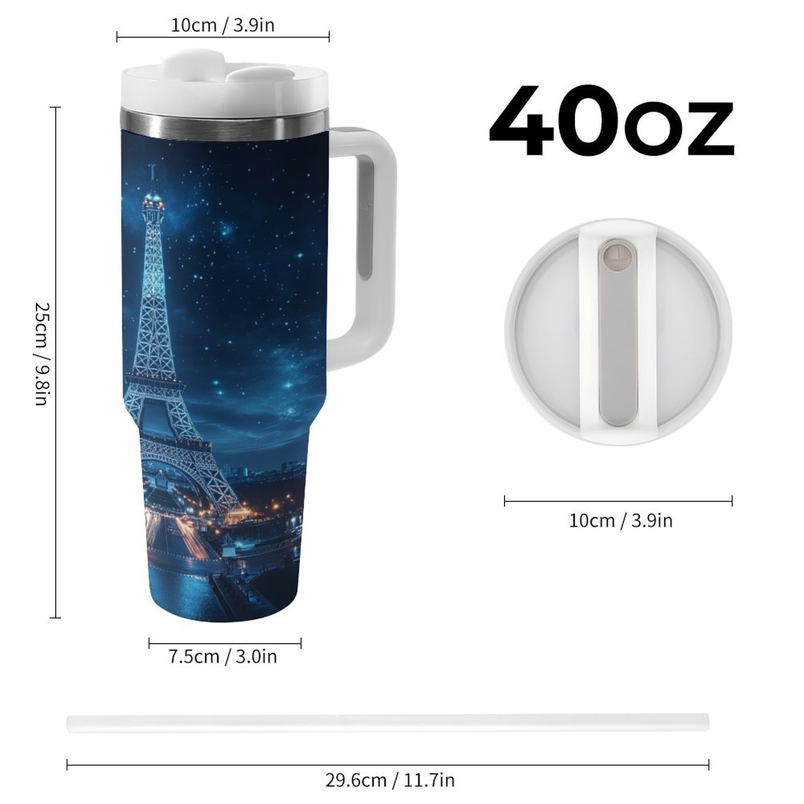40oz Čaša sa Dizajnom Eiffelovog Tornja od Nerđajućeg Čelika sa Slamkom i Ručkom – Izolovana Putna Šolja, Protivklizna, Višekratna, Može se Prati u Mašini, Voda, Auto, Pari Tematski Poklon, Književna Čaša, Vakuum Čaša, Putna Šolja za Kafu, Vakuum Čaša, Stanly Čaša For