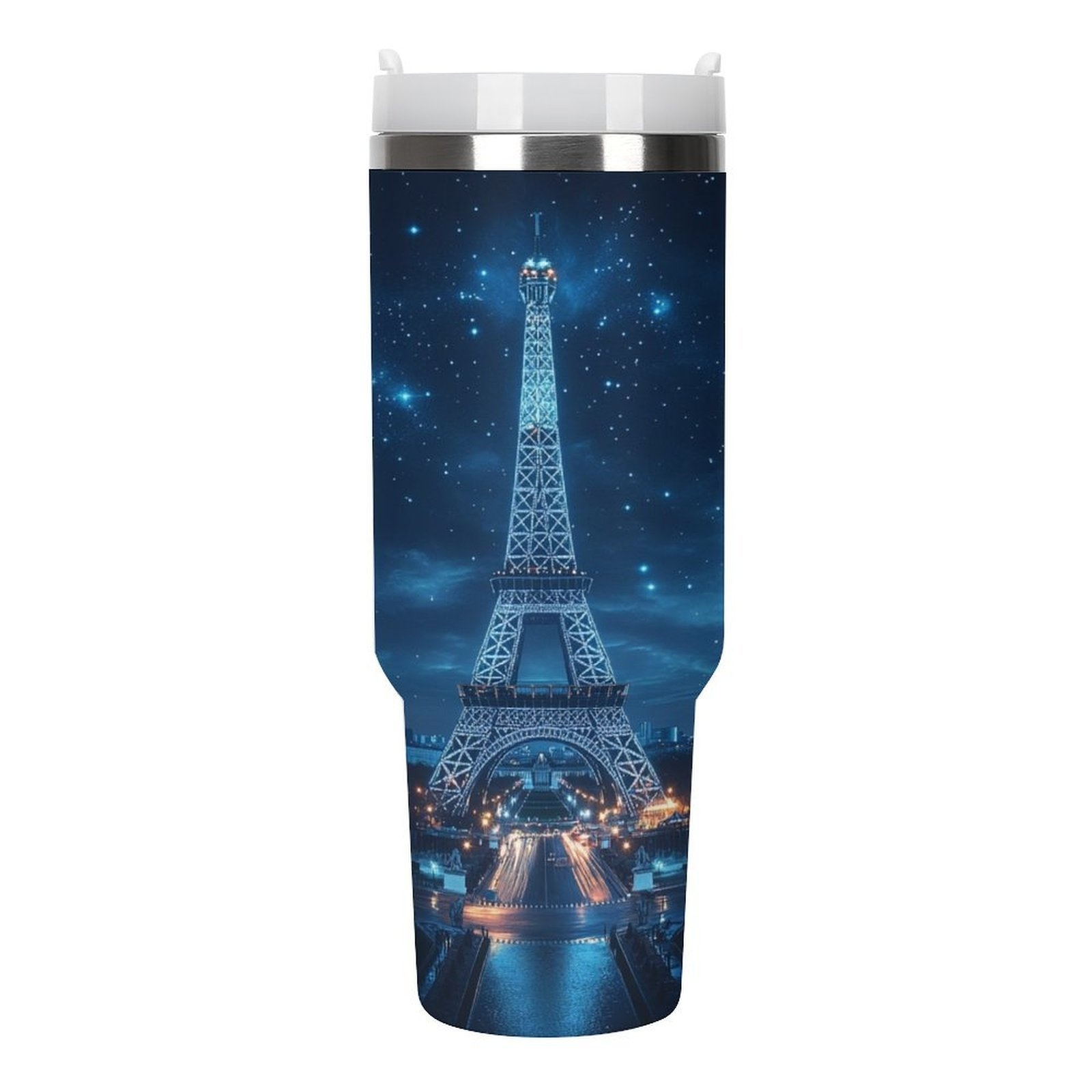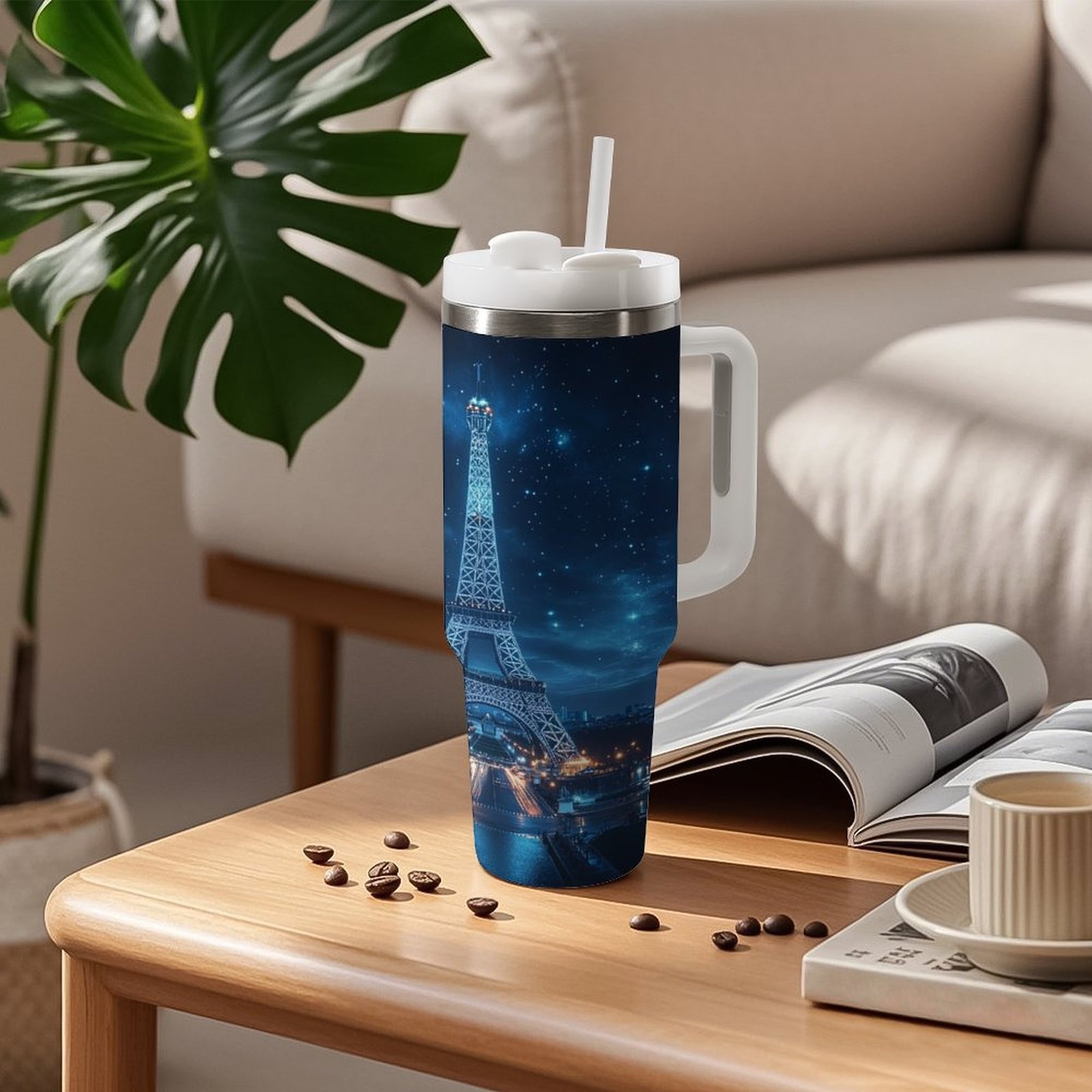 40oz Čaša sa Dizajnom Eiffelovog Tornja od Nerđajućeg Čelika sa Slamkom i Ručkom