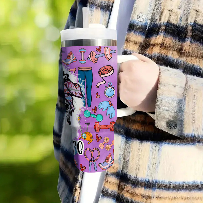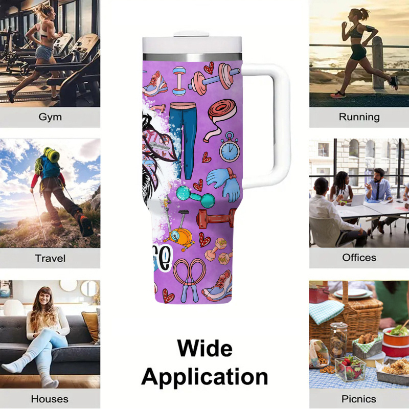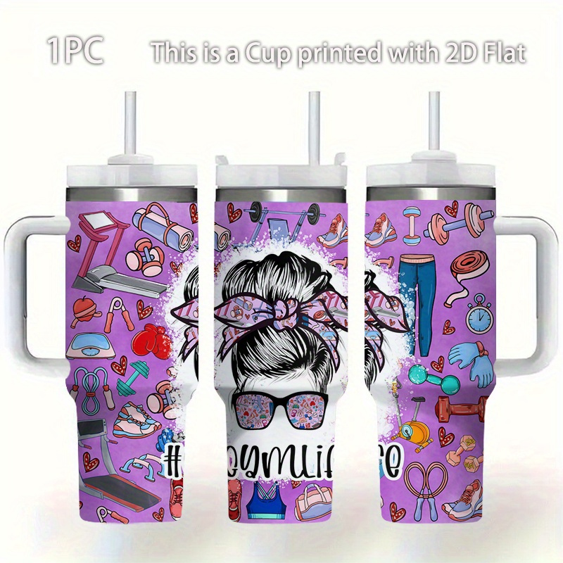 1 kom 40oz sportska šolja od nerđajućeg čelika sa dizajnom 2D uzorka teme teretane, dvostruko zidno vakuumsko izolovano, nepropusno, lako nošenje ručke, idealan poklon za entuzijaste fitnesa, savršen za kafu, vodu ili teretanski pribor, teretanski pribor, šolja sa likom, šolja izolovana za vruće/hladno sa slamkom, vakuumska šolja za vruću i hladnu kafu, vakuumska šolja sa štapićem i Lilo, vakuumska šolja za vruću vodu, termalna šolja, šolja za putovanje sa kafom, vakuumska šolja, Stanly šolja za