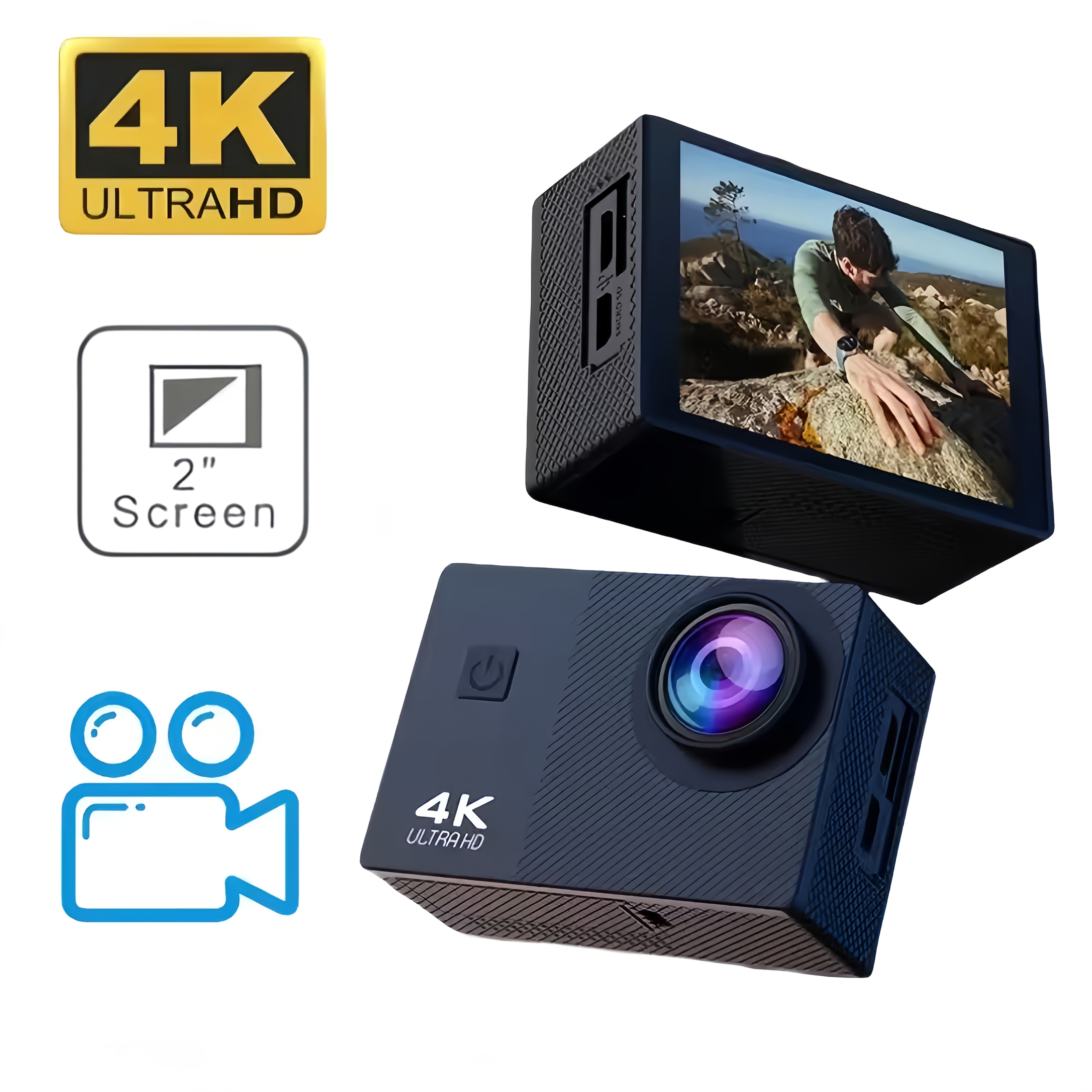 4K Ultra HD Akciona Kamera sa Time-Lapse Fotografijom, ekranom od 5.08cm i setom za snimanje akcije koji podržava 4K Ultra HD rezoluciju – Savršena za porodična putovanja, aktivnosti na otvorenom, sportsko snimanje, opremu za avanture, moderan dizajn