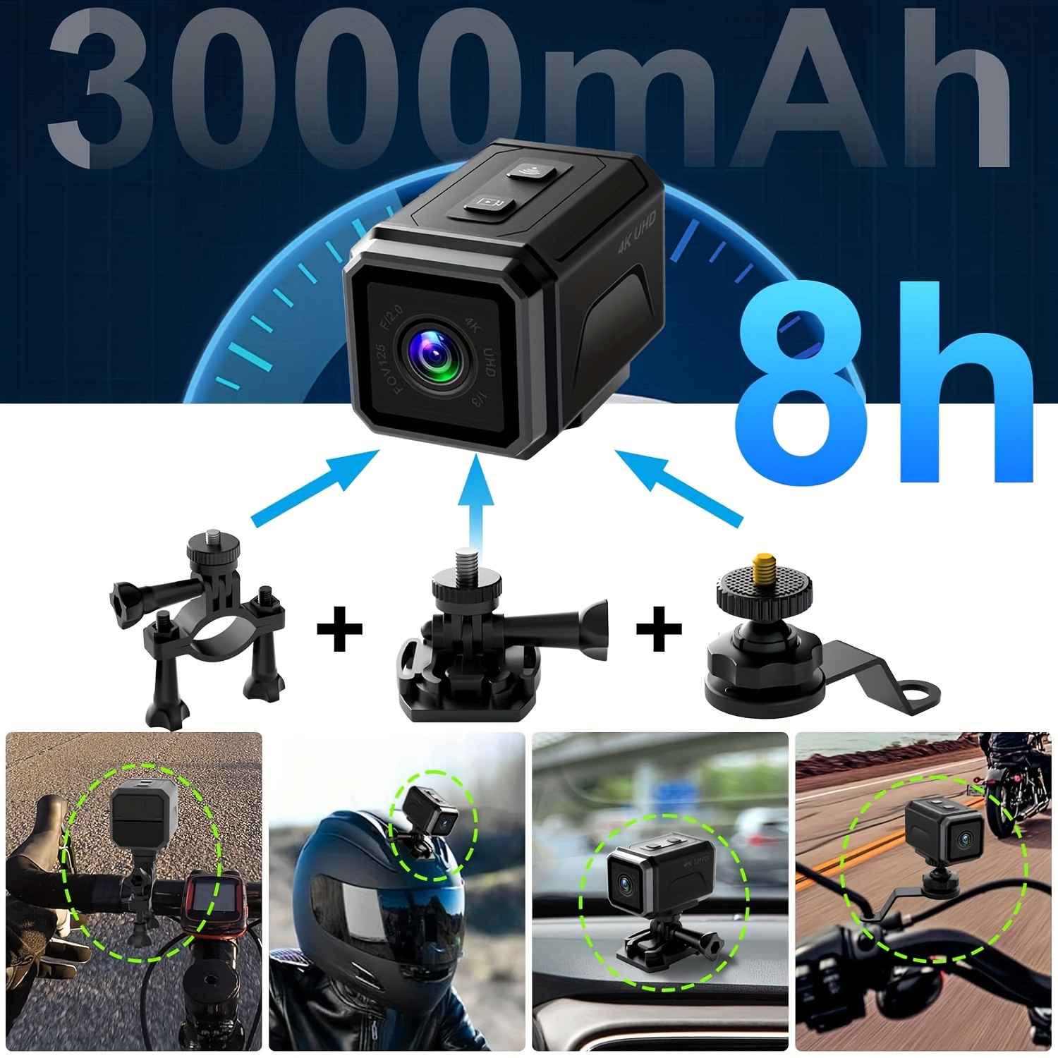 4K Ultra HD Prenosiva Akciona Kamera za Spoljašnju Upotrebu | Otporna na Kišu i Prašinu, Stabilizacija Slike, Rekorder za Motocikle/Bicikle/Jahanje, WiFi Hotspot, Punjiva Baterija od 3000mAh, 8 Sati Kontinuiranog Snimanja, Objektiv Širokog Ugla od 120°, Svakodnevno Vlogovanje