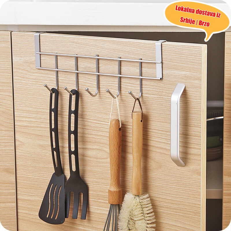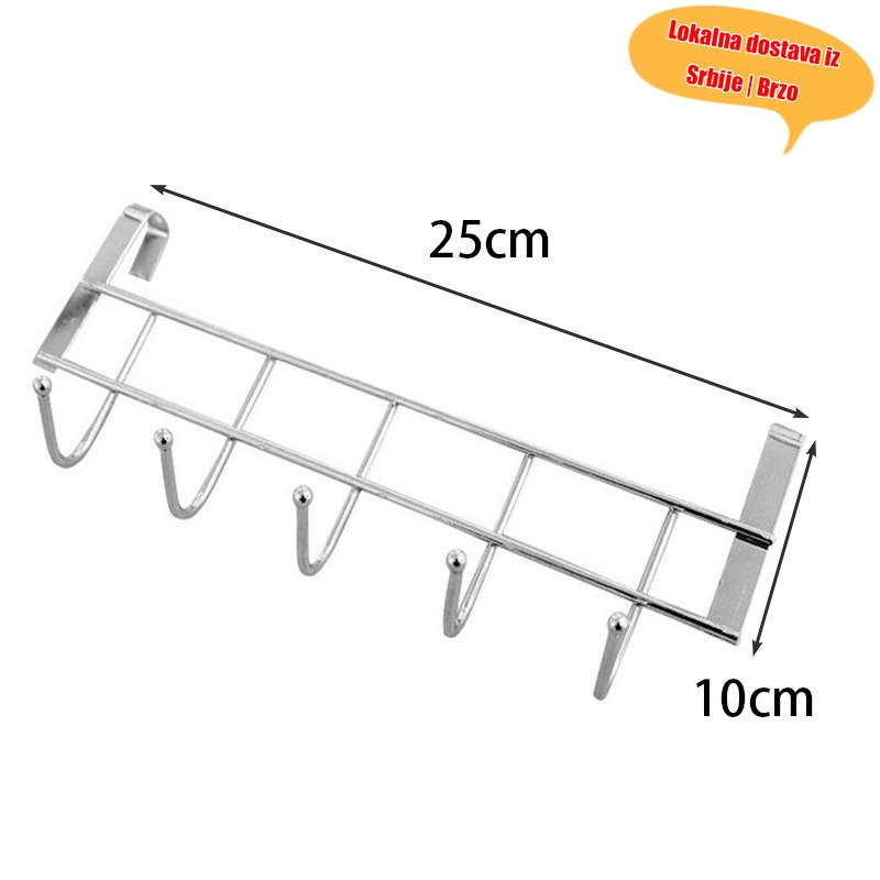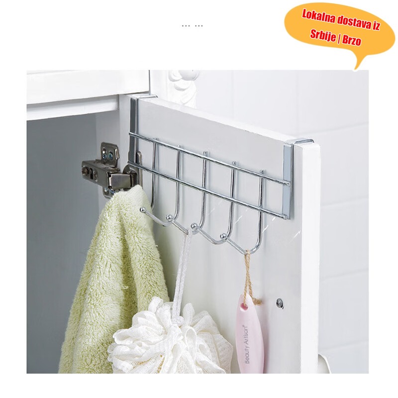 5-Kukica Viseća Polica od Nerđajućeg Čelika Bez Bušenja za Vrata | Polica za Odeću i Šešire za Vrata Ormara, Multifunkcionalni Organizator za Odeću i Šešire, Eklektični Stil