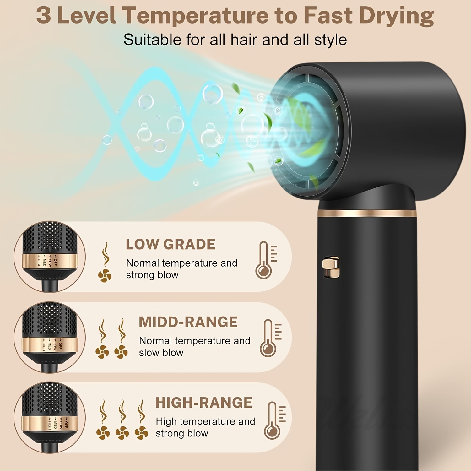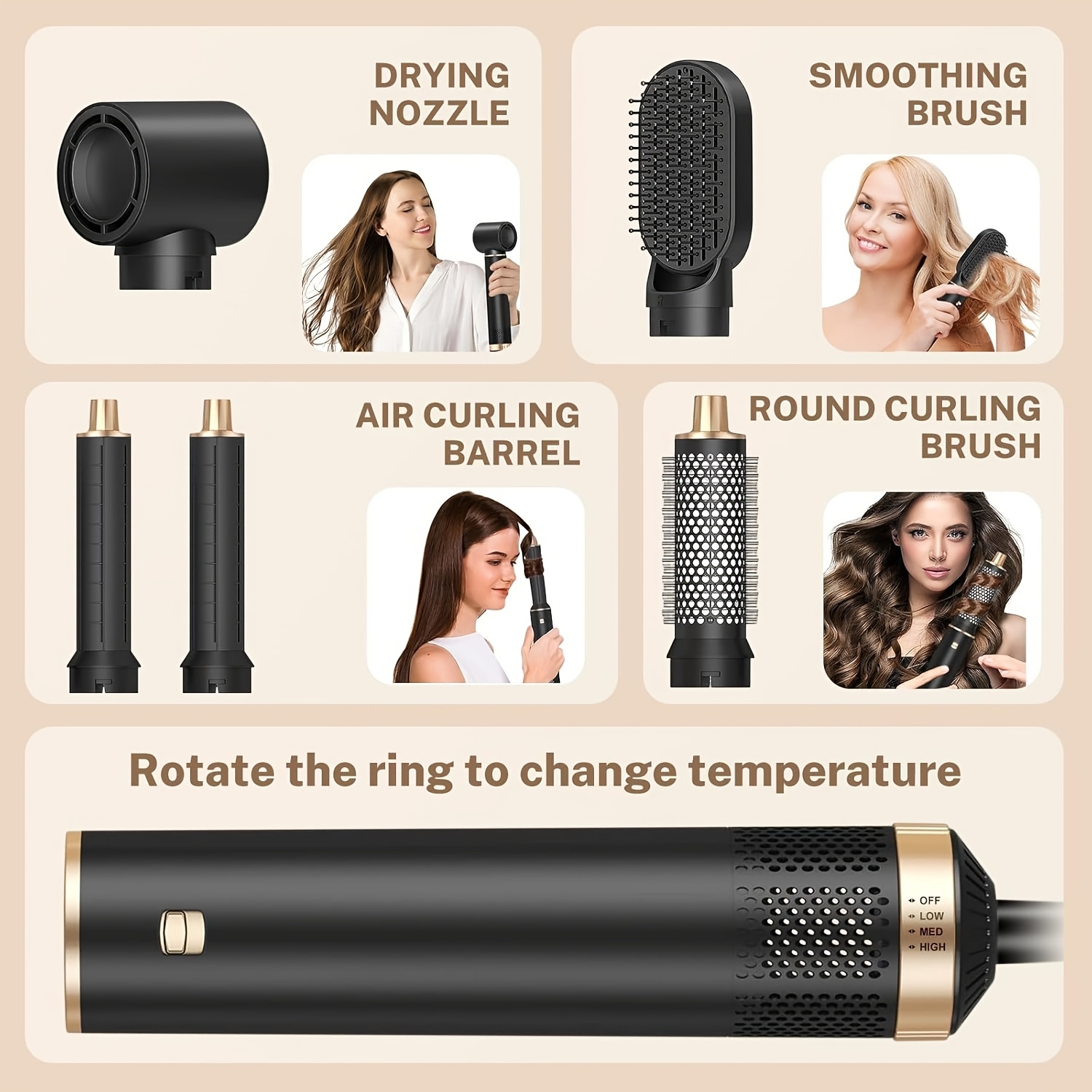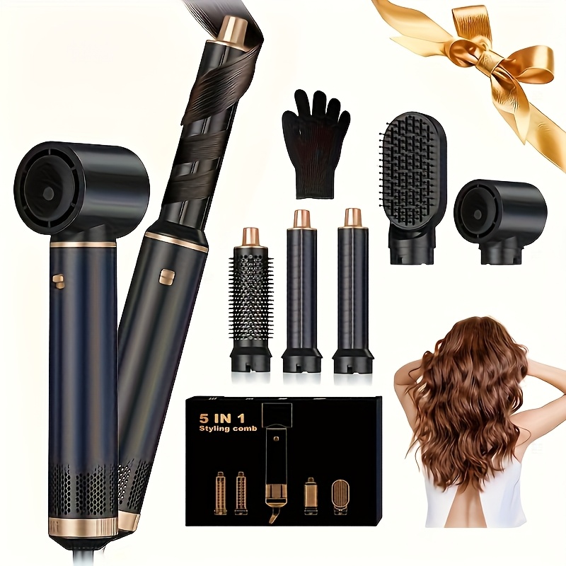 5-u-1 Četka za stilizovanje vazduhom, poboljšana uključujući uklonjivu uvijač za kosu i peglu za kosu – 1000W velika snaga topline, kabl dužine 1.5-2.5M, kompatibilna sa EU utikačima, pogodna za mokru/suvu upotrebu, sigurnosne funkcije za sprečavanje opekotina