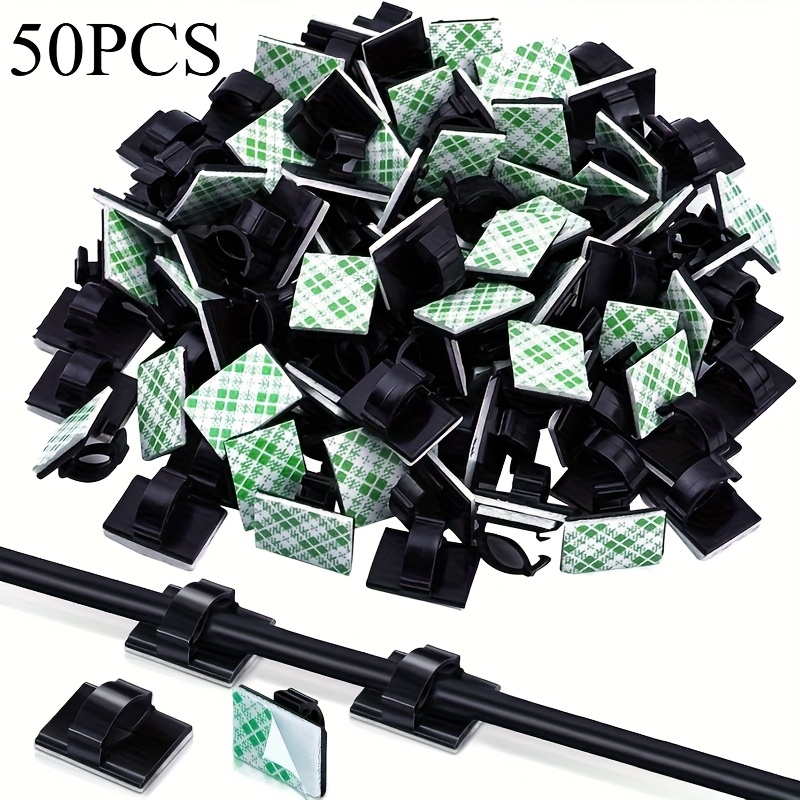 50 kom. Adhezivne kopče za kablove – Čvrste kopče za kablove sa zelenom i belom šahovskom šarom, izdržljivi plastični držači za kablove za upravljanje kablom, idealno za kuću, kancelariju, automobil, ispod stola i organizaciju zida, držač za kablove, organizator za sto, šahovski uzorak, čvrsta konstrukcija
