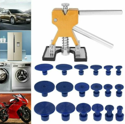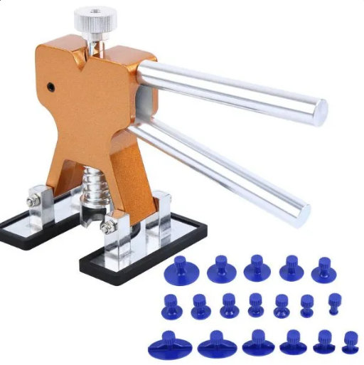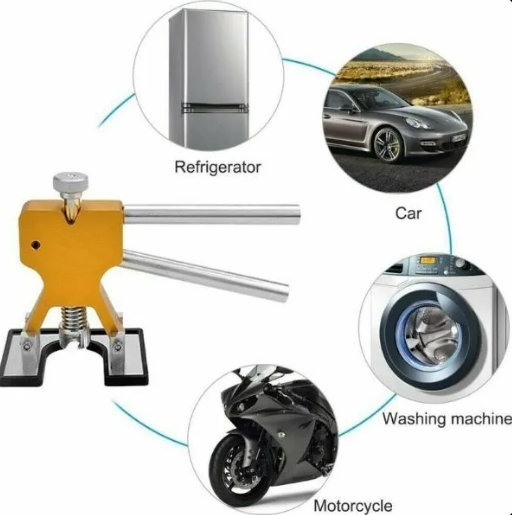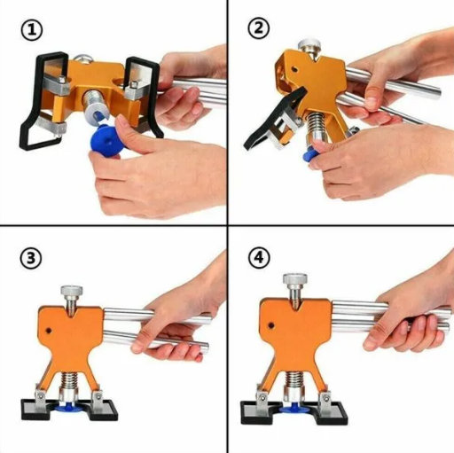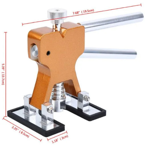 Ovaj magični alat za izvlačenje radi na principu kliješta. Sastoji se od dvije ručke i dvije gumene stopice između kojih se nalazi opruga za podizanje lima, tj. izvlačenje udubina.