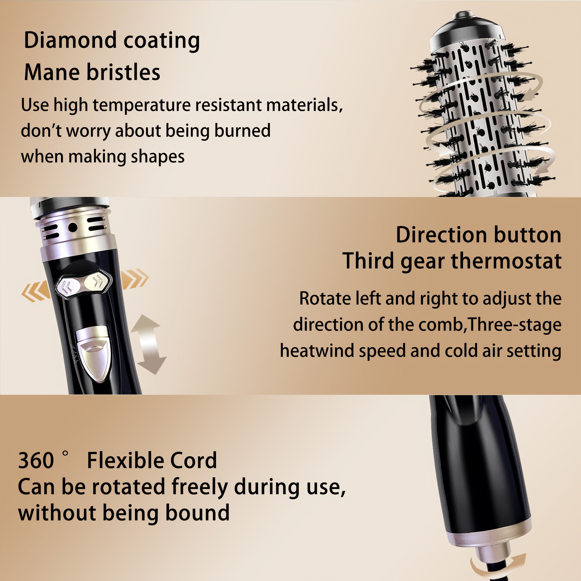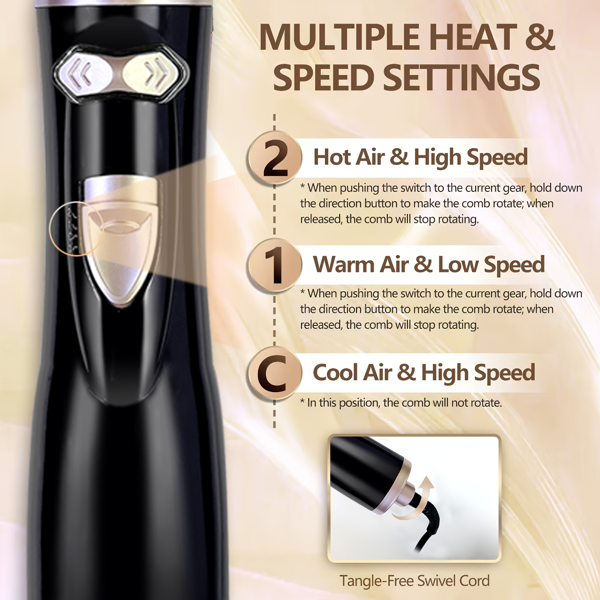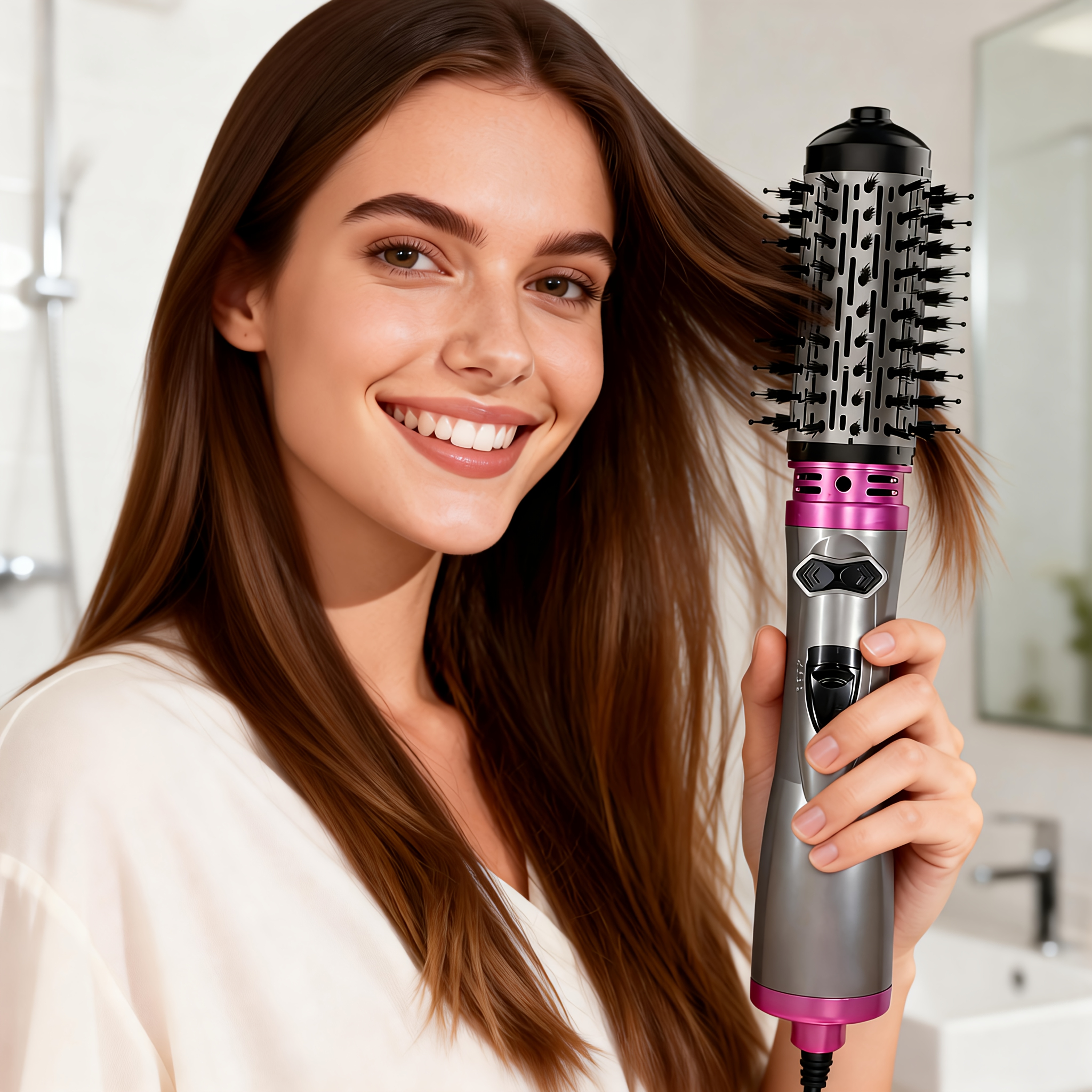 Automatski rotirajuća četka za oblikovanje kose, 1000W fen češalj za oblikovanje kose, sa 2 izmenjive četke (1,5-inčna i 2-inčna) za sušenje, zaglađivanje i davanje volumena kosi, omiljeni kozmetički alat za žene.