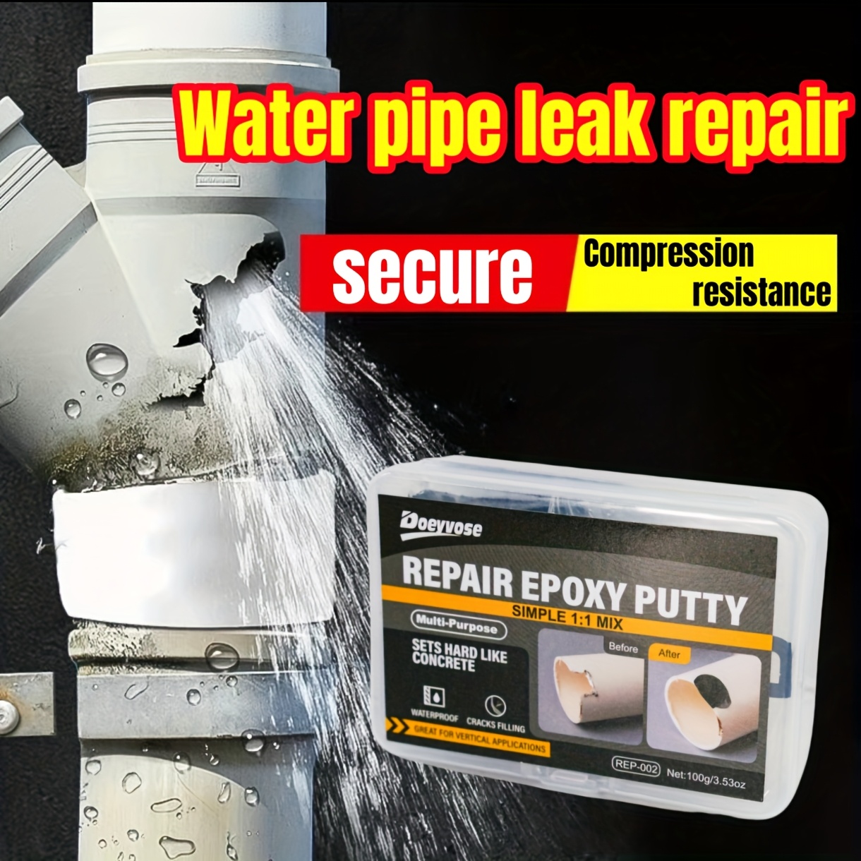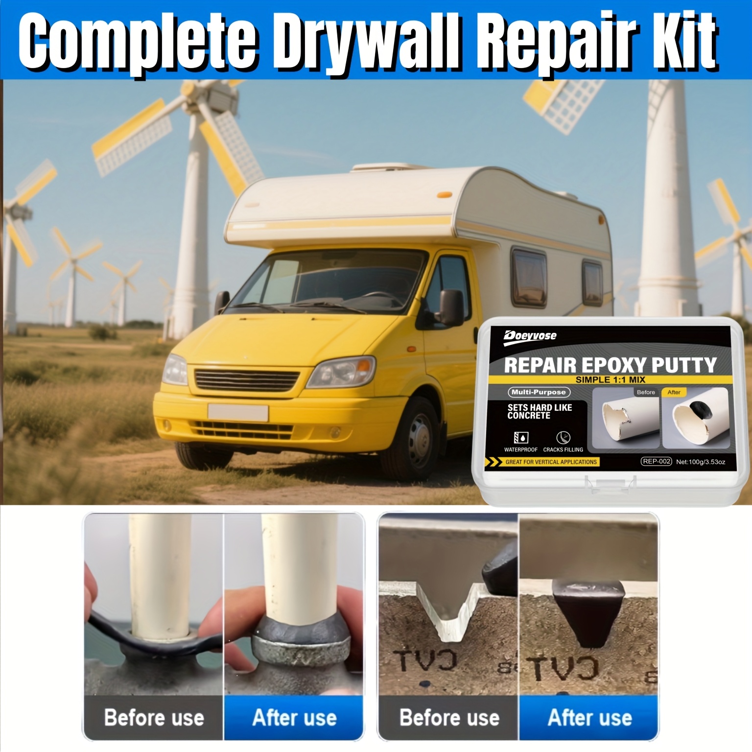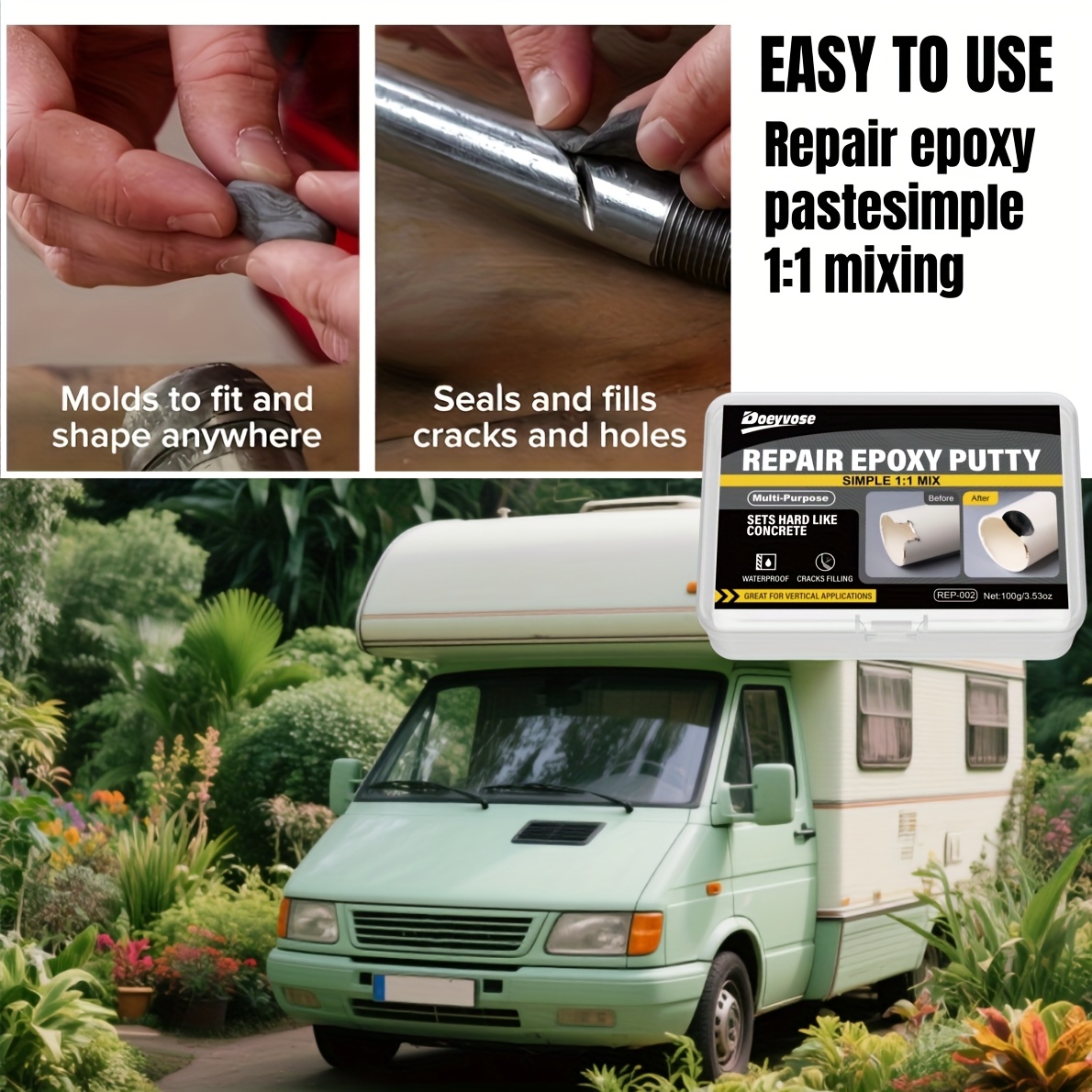 Doeyvose Automobilski Epoksidni Kit za Popravku RV i Automobila – Brzo Sušenje Bez Potrebe za Trakom, Zaptivač za Navoje, Spaja Cevi, Branike, Tvrdi Plastiku – 100g/3.53oz, Popravka Automobila, Elegantno Pakovanje, Izdržljivo Lepilo, Ljepilo za Navoje, Za Entuzijaste uradi sam, Održavanje Vozila, Jednostavna Primena, Snažno Povezivanje, Lepilo za Branje Navoja, Vlasnici Automobila