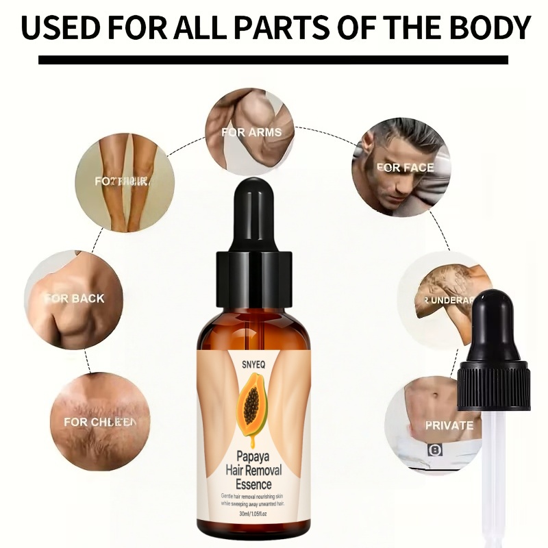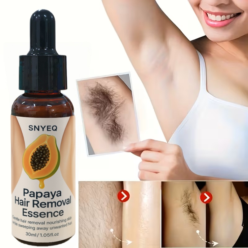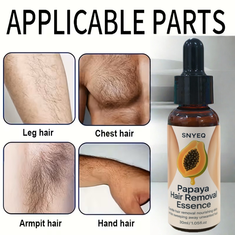 Bezbolna esencija za uklanjanje dlaka od papaje – Brzo smanjenje dlaka za 2 minuta | Nježna za osetljiva područja (brada, noge, intimna zona) | Y & Neiritirajuća PC