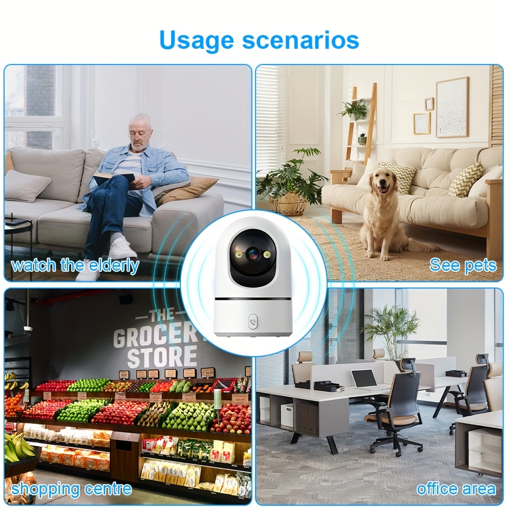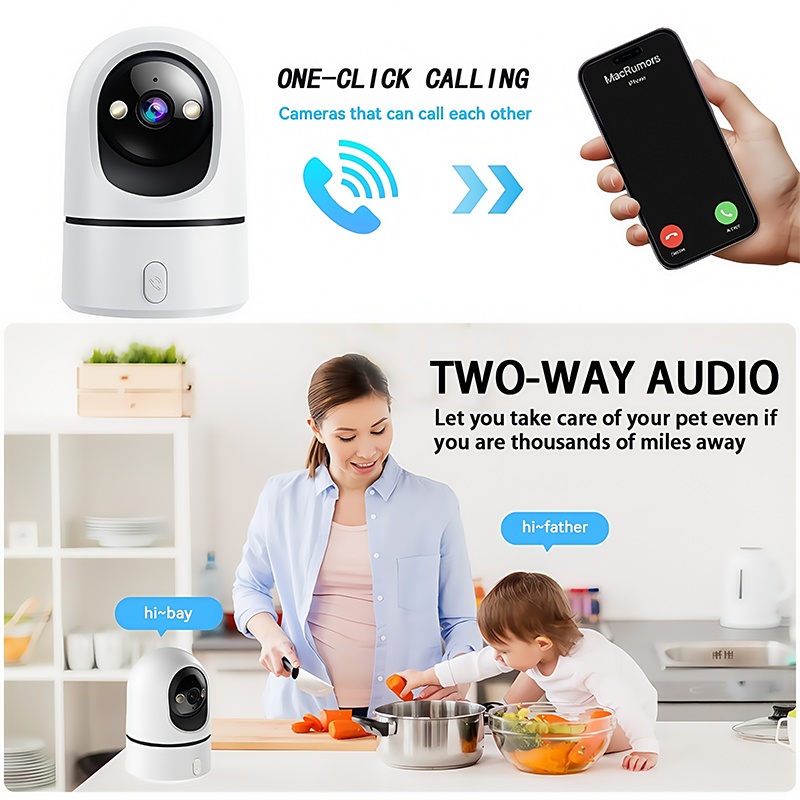 Bežična kućna sigurnosna kamera, jednostavno pozivanje i razgovor za nadzor dece, uvek dostupan komunikacijski kanal, 2.4G WiFi bežični sistem sa detekcijom pokreta i praćenjem, noćnim vidom u boji te dvosmernom audio vezom, Nadzor za kućne ljubimce,Savremeni Sigurnosni Uređaj,Dvosmerna komunikacija