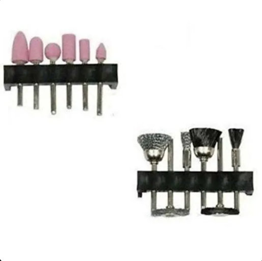 Set od 12 komada: (6) montirano kamenje, (3) mesingane žičane četke i (3) najlonske četke