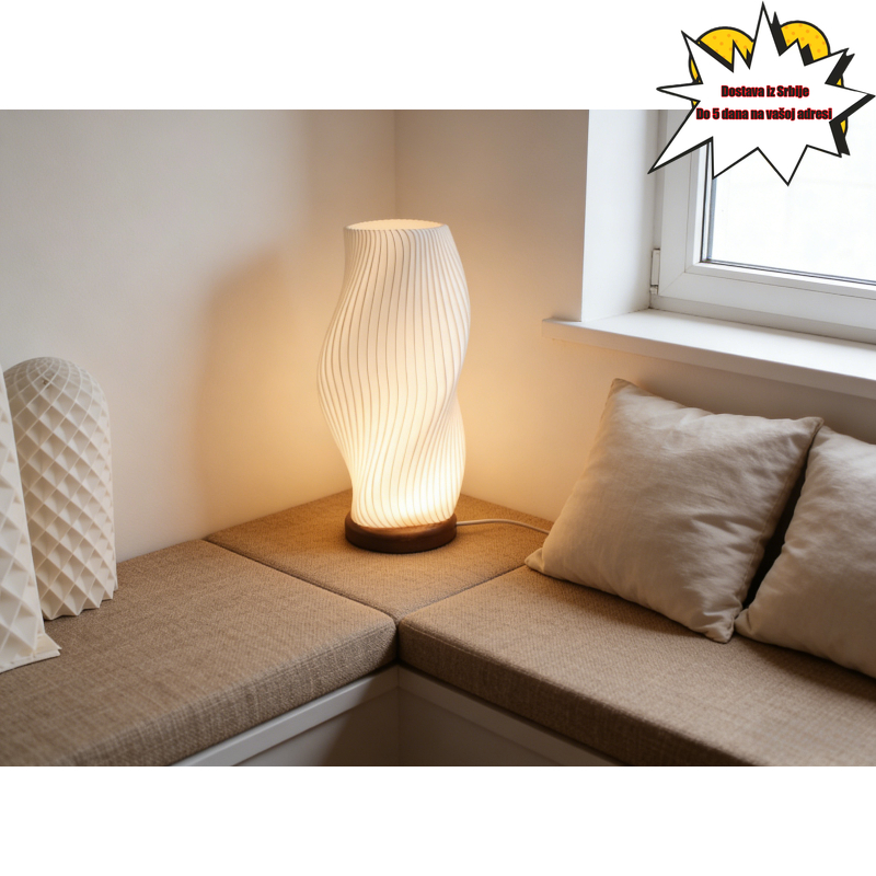 Božićna ograničena 3D štampana lampa sa talasastim strukom i toplim svetlom – jedinstven poklon za atmosferu i umetnost senke