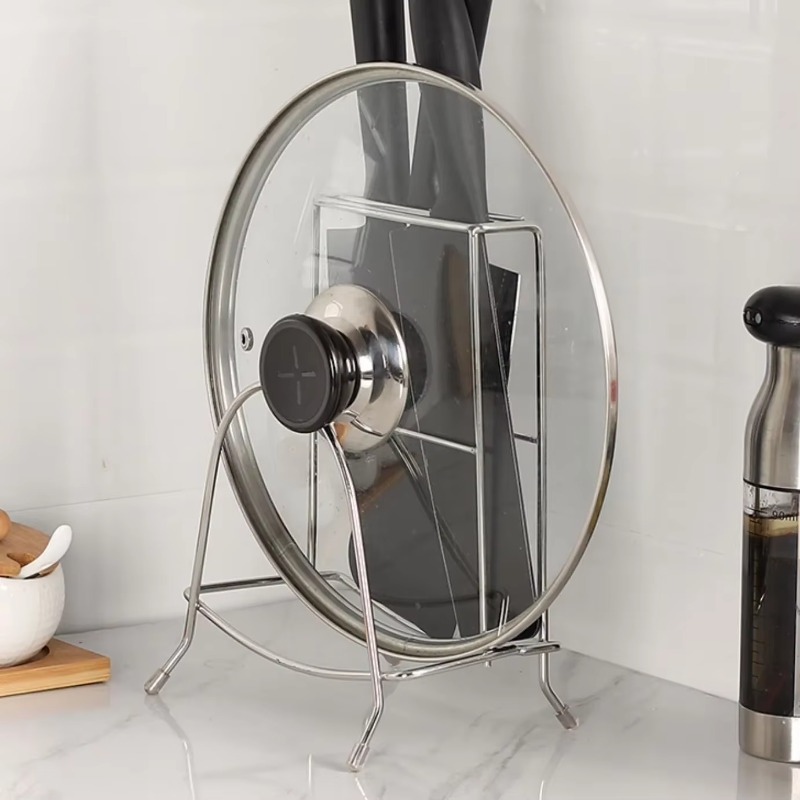 Čelična držač za daske za sečenje i poklopce – Čelični nosač za male kvadratne daske sa dizajnom koji štedi prostor, organizacija za više dasaka, polica za čuvanje posuđa, lako za čišćenje