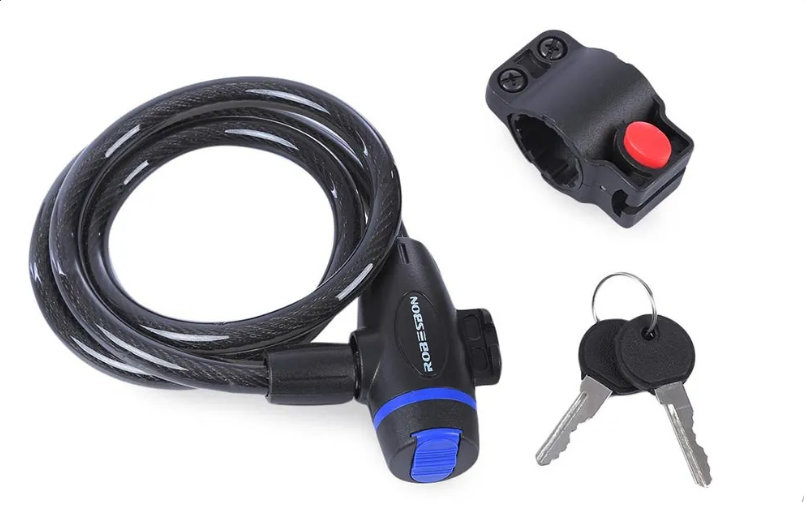 Čelična sajla za zaključavanje bicikla, materijal: čelik / zaštitna guma i plastika – netoksicni, zastitni ABS materijali bez mirisa, bez pucanja na niskim temperaturama i bez deformacije na 40+C.