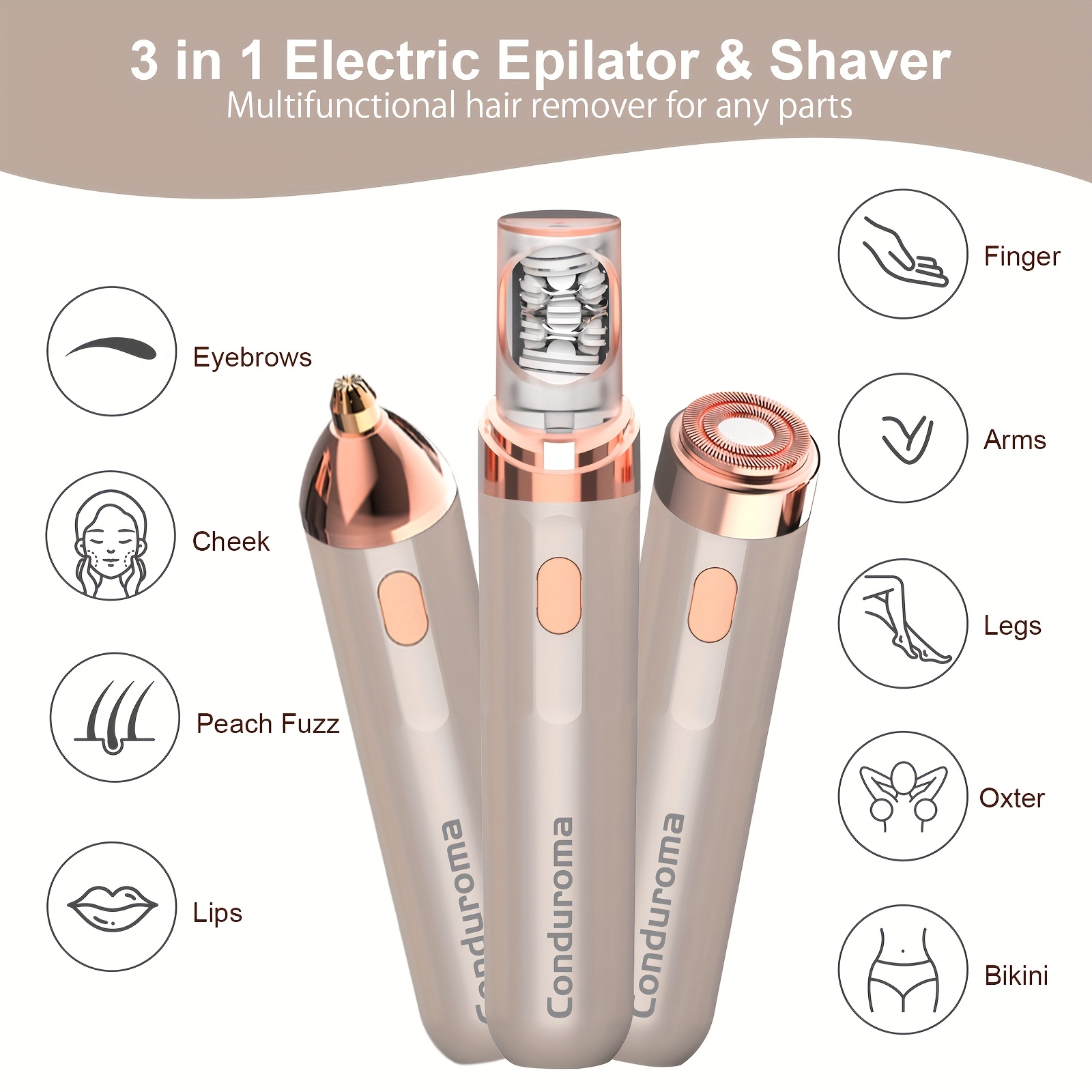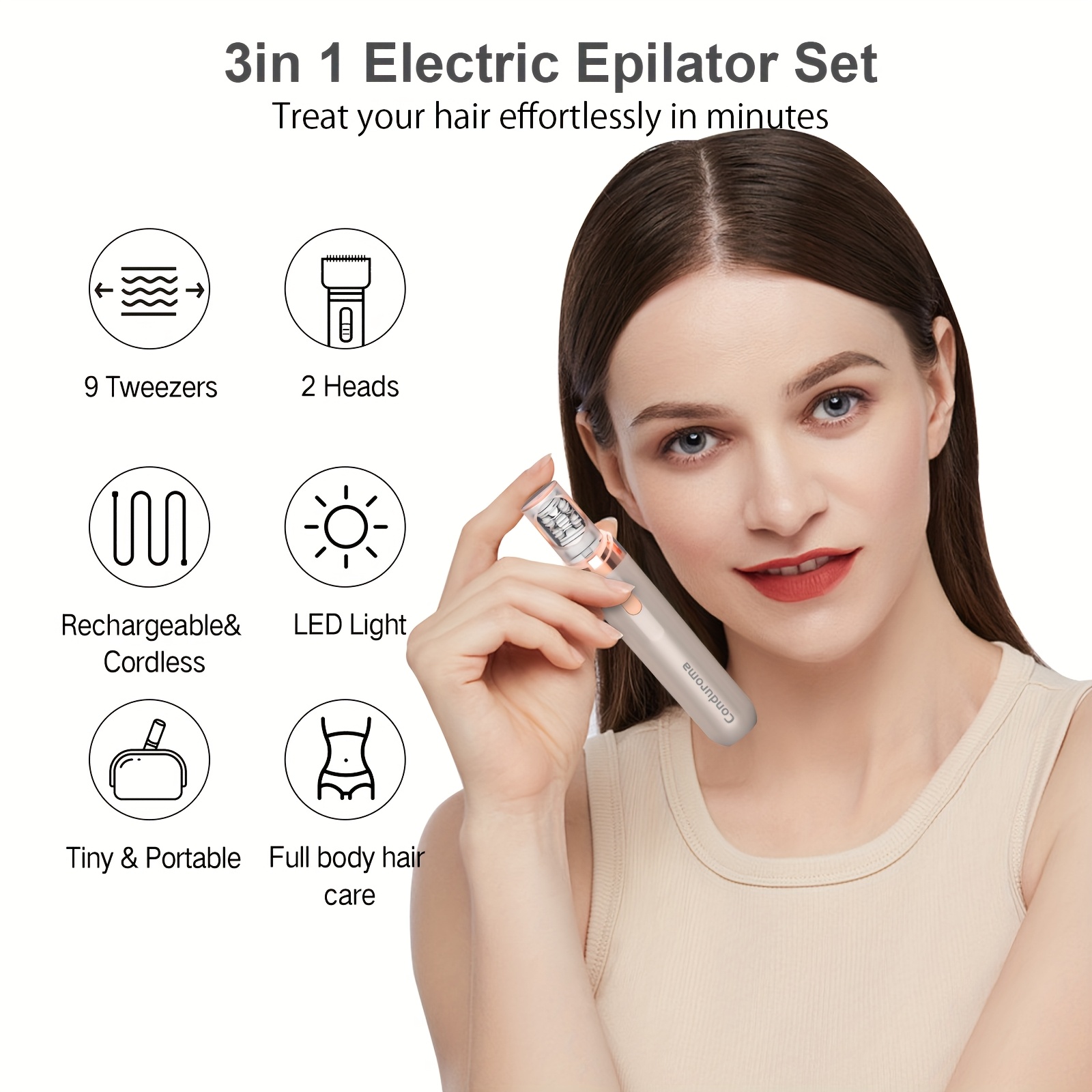 Conduroma Epilator za Uklanjanje Dlaka za Žene sa LED Svetlom, 3 u 1 Bežični Epilator za Žene, Električni Trimer za Uklanjanje Dlaka sa Lica i Obrva, Punjivi Brijač za Dlake na Licu