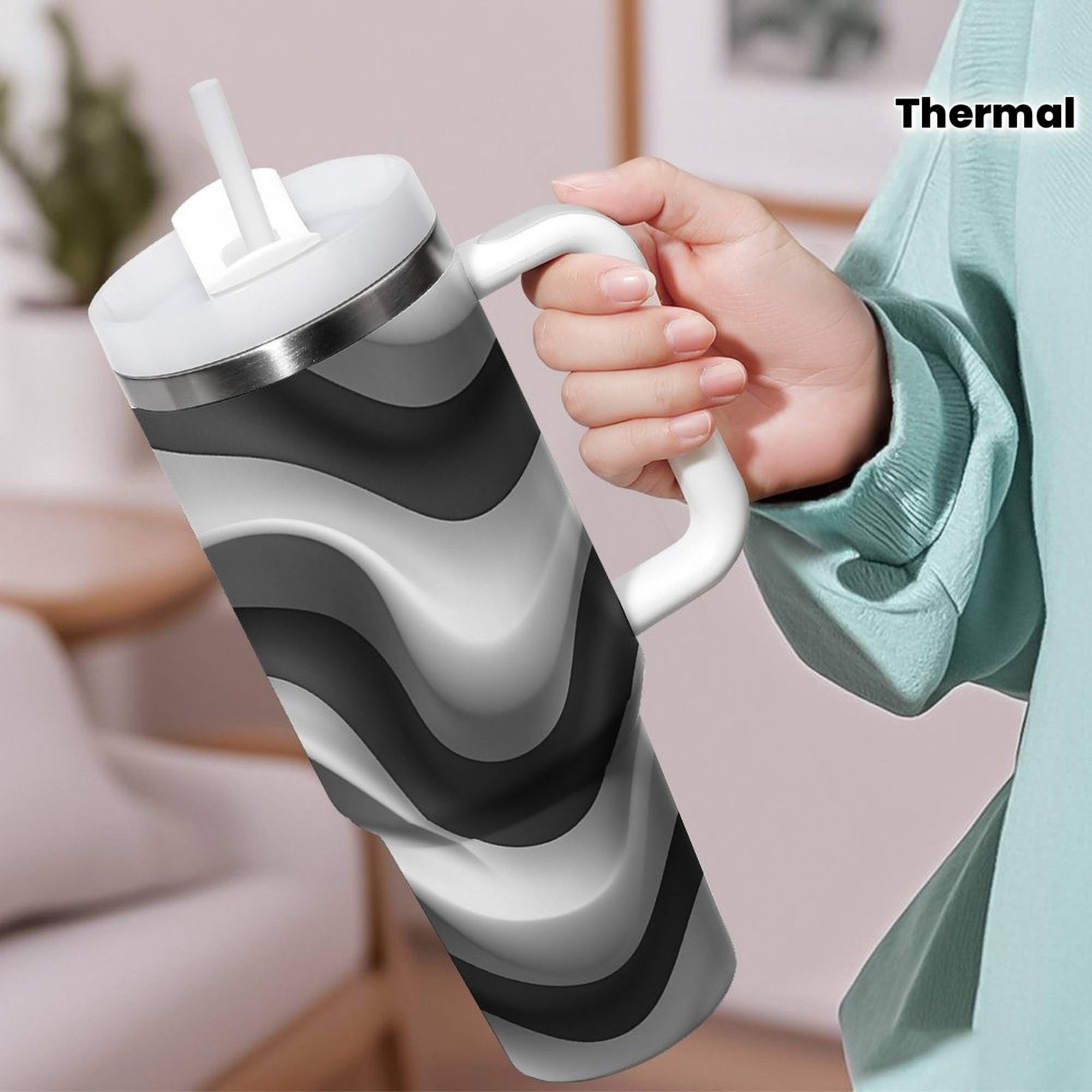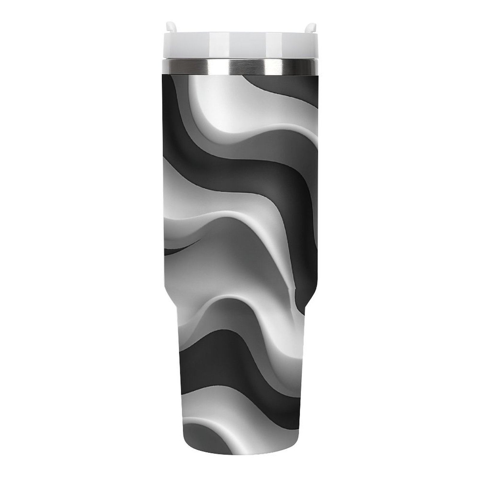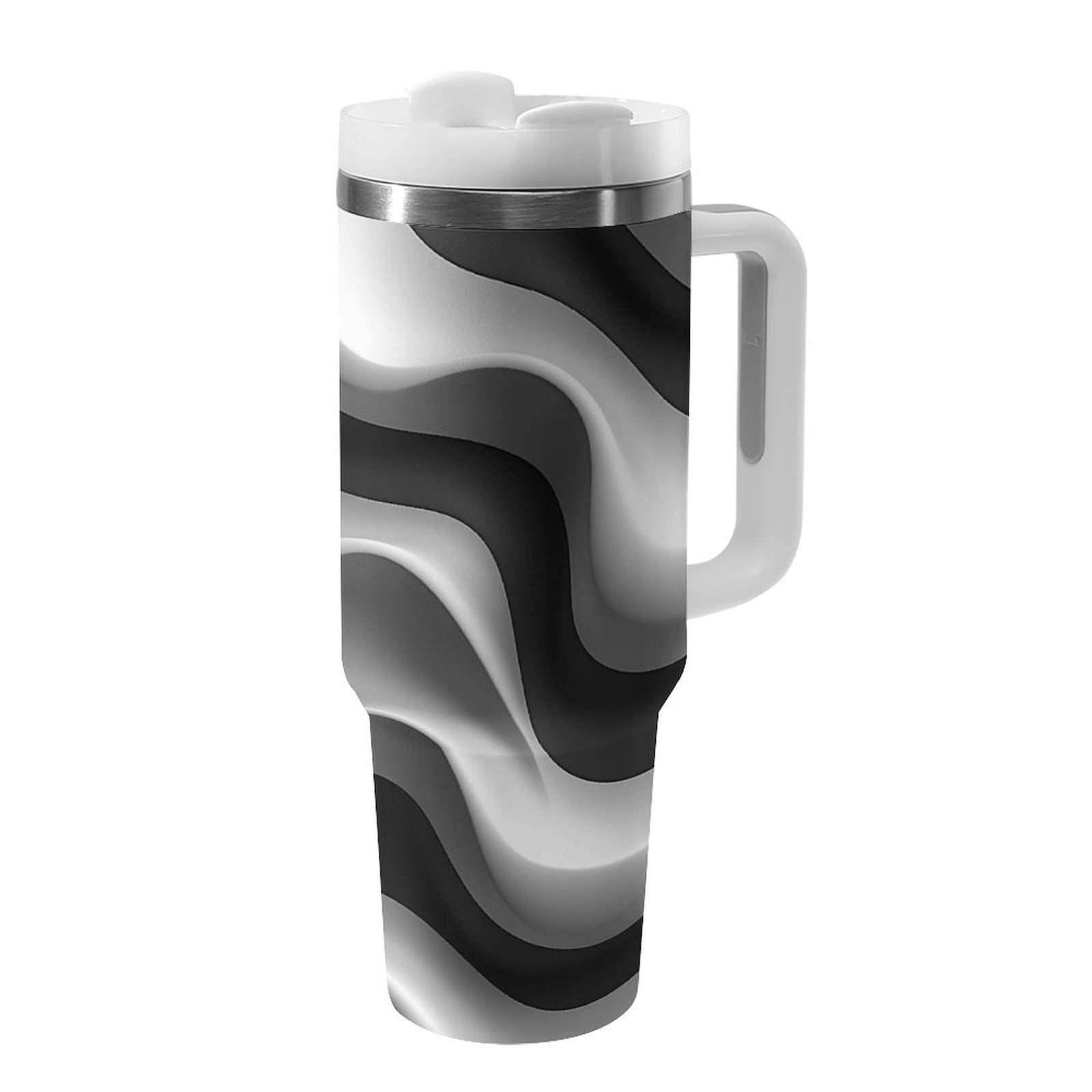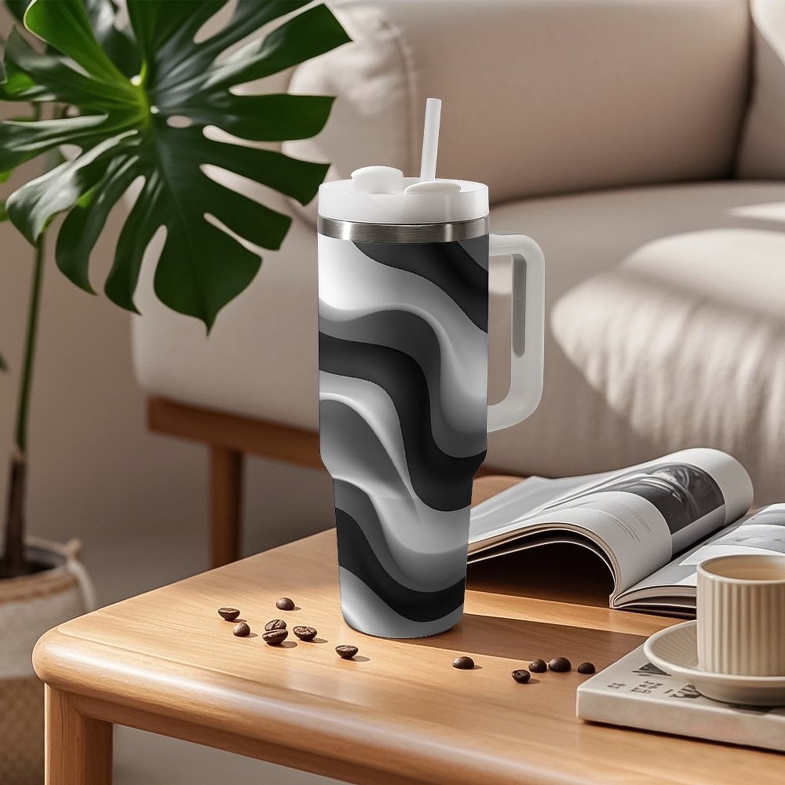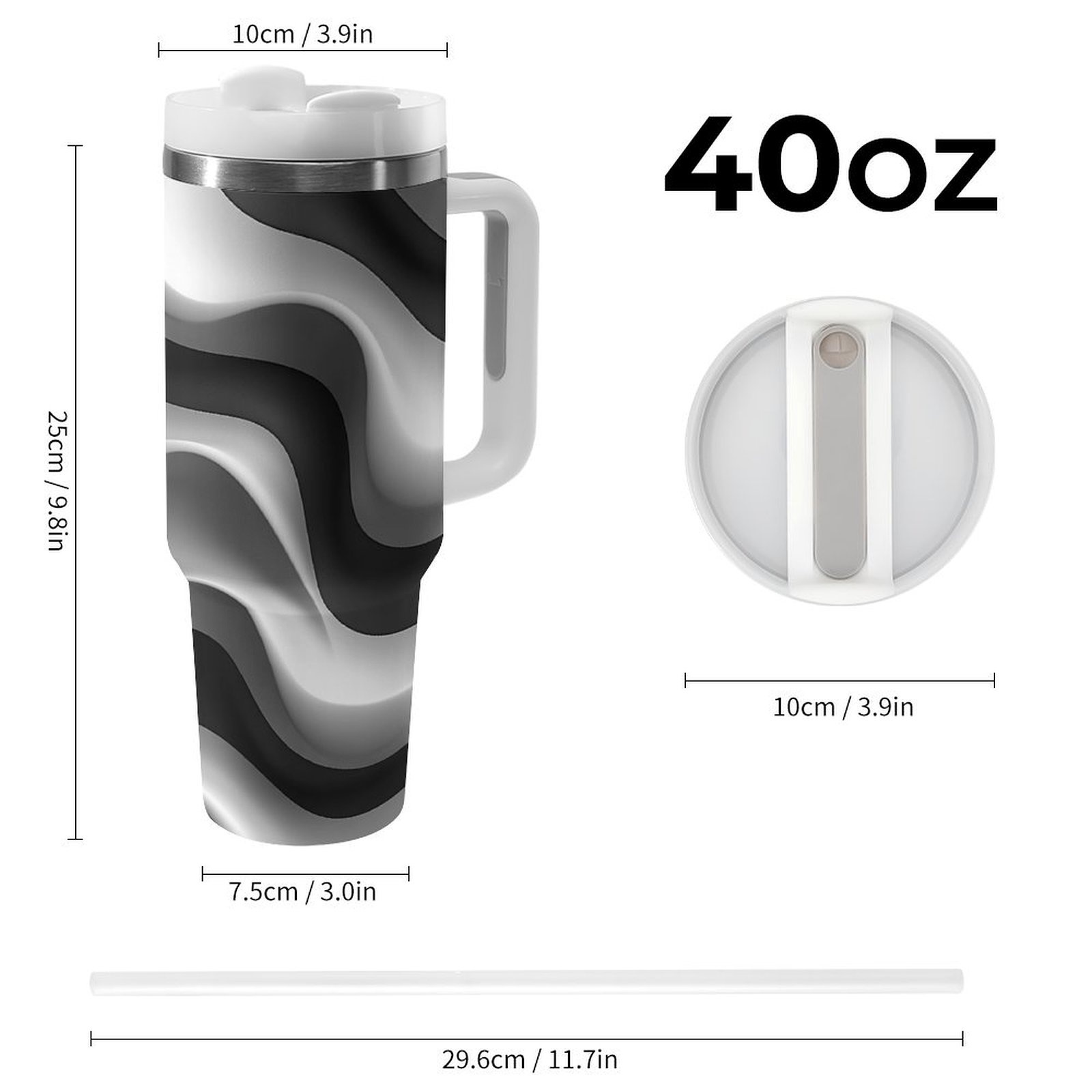 1 kom Velika Termo Čaša od Nerđajućeg Čelika od 40oz sa Slamkom i Ručkom – Dvostruko Zidna Vakuumski Izolovana, Poklopac Protiv Prolijevanja, Crno-Bela Boca za Vodu, Kamuflažni Termo, Veliki Talasni, Termo Šolja, Putna Šolja za Kafu, Veliki Talas, Termo Čaša, Stanly Čaša