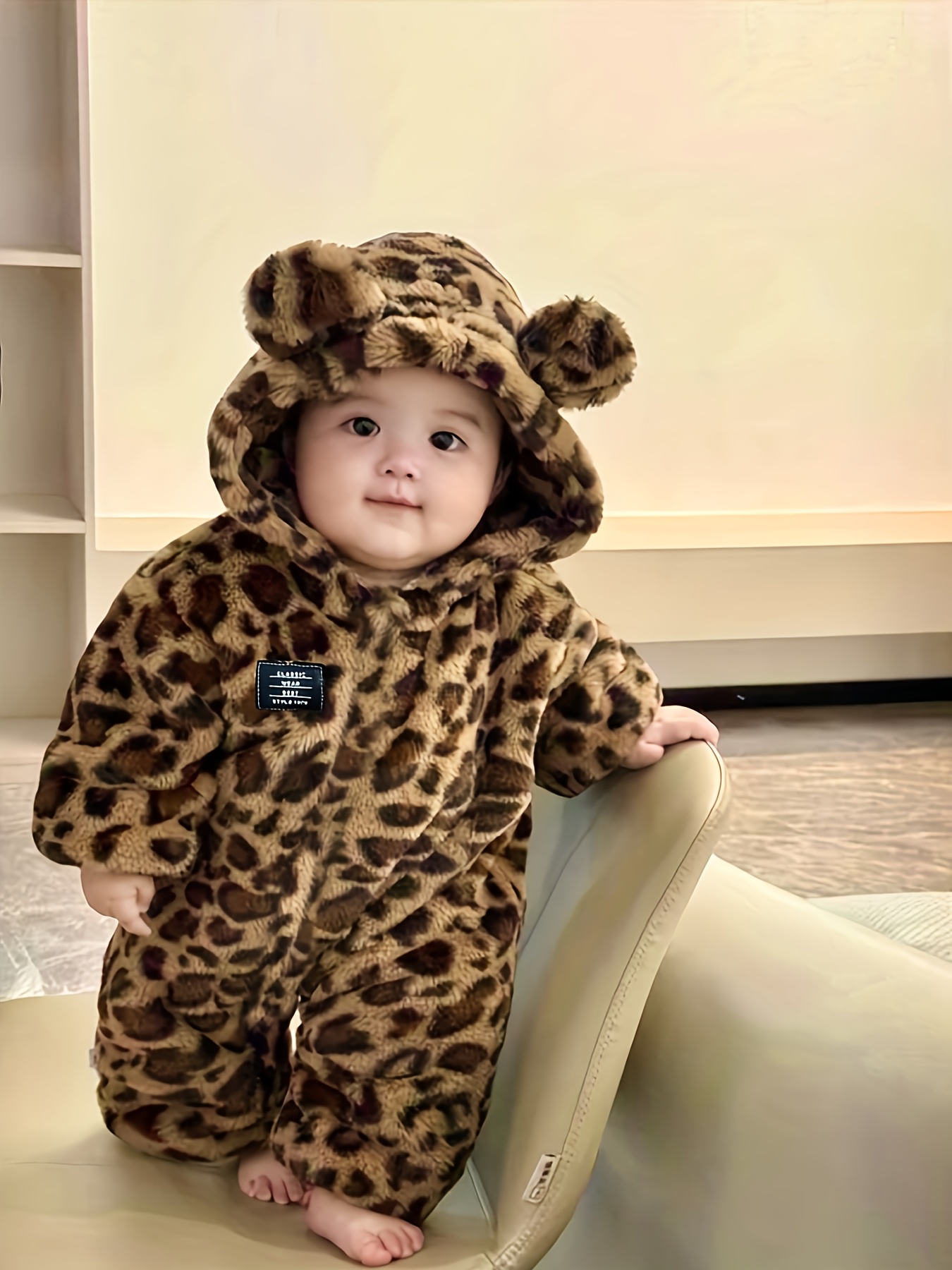Dečija odeća od flisa sa leopard printom za jesen i zimu, slatki i mekani bodi za bebe, idealni za nošenje napolju.