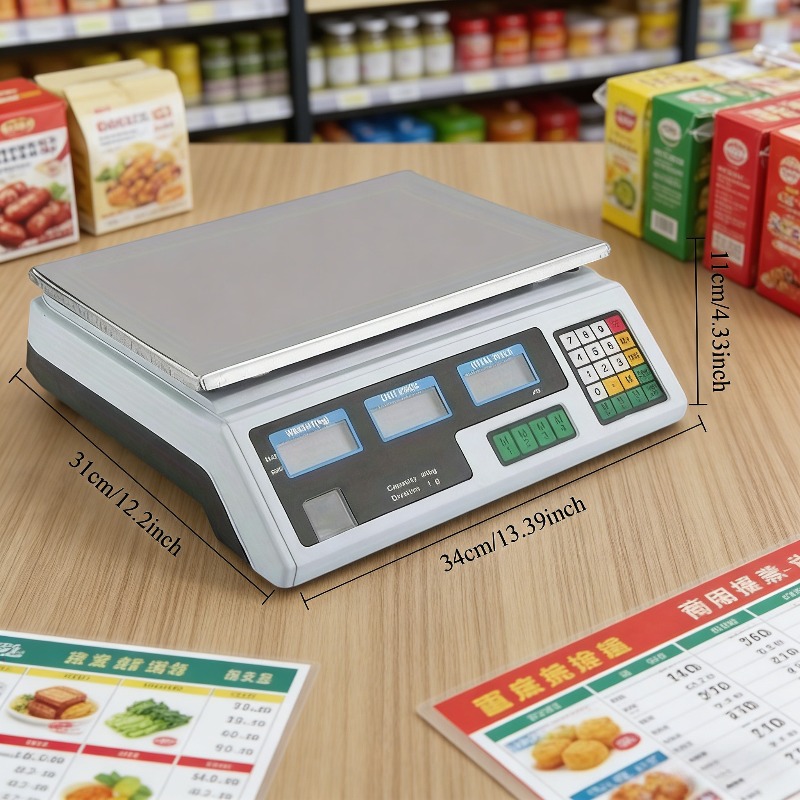 Digitalna vaga za komercijalnu upotrebu | Precizan alat za merenje za prodavnice i kućnu kupovinu na veliko, plastika, napajanje preko utikača, radni napon 110V-240V, bezbedna za kontakt sa hranom