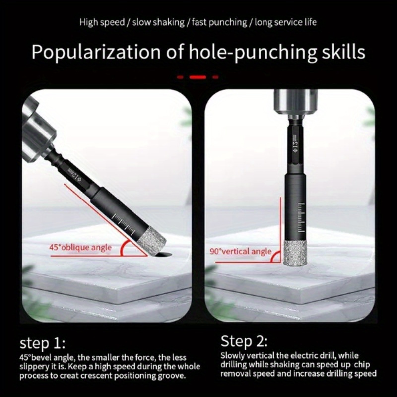 1 komad dijamantski stakleni perforator za mermer, pločice i sve keramiče suvo bušenje alatka sa preciznim svrdlom od industrijskog materijala premazanih diamanta. Alati: Suvi burgija oprema; Pribor u oblastima građevine profesionalaca montažera