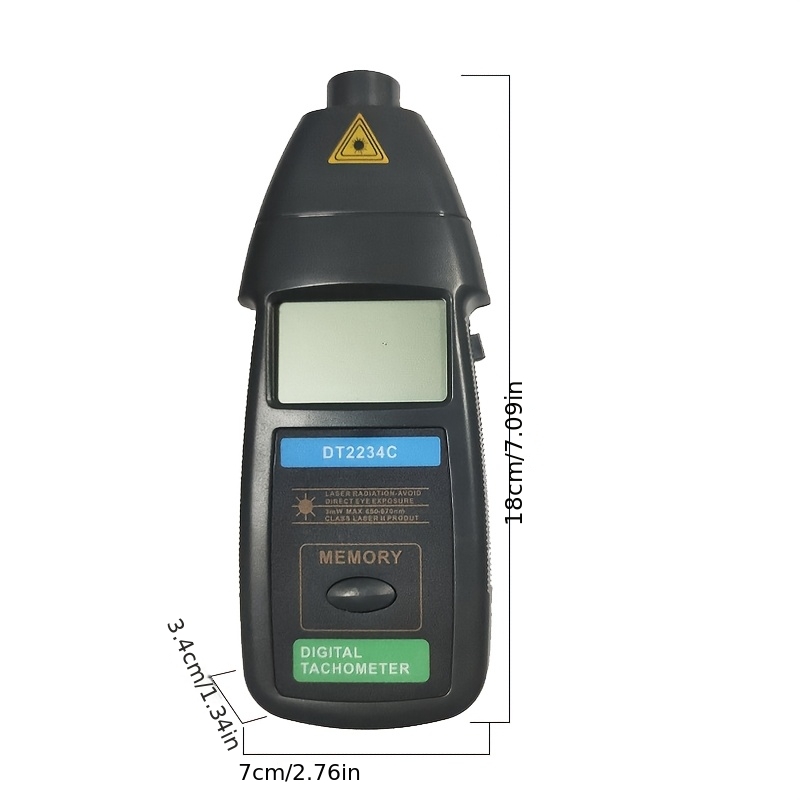 SPECIFIKACIJE:(Ekran sa tečnim kristalima), safunkcija najaveOpseg testiranja: 2,5 do 99,999 obrtaja u minuti (r/min)Rezolucija: 0,1 RPM (2,5 do 999,9 RPM)1 RPM (preko 1.000 RPM)Tačnost: ±(0,05%+1 cifra)Vreme uzorkovanja: 0,8 sek. (preko 60 obr/min)Opsežnost testa: AutomatskiMemorija: Maks. vrednost, Min. vrednost, Poslednja vrednostDetekcijska udaljenost: 50 do 250 mm/2 do 10 inča (LED), Izlaz:50 do 500 mm/2 do 20 inča (Laser)Vremenska osnova: Kvarcni kristalKolo: Ekskluzivni jednokomponentni mikroračunarski LSI kolo