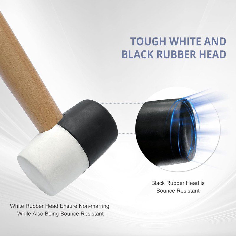 Dvostruki Meki Čekić za Lice | Bela Crna Drvena Drška za Obradu Drveta, Podove, Pločice, Bez Potrebe za Električnom Energijom