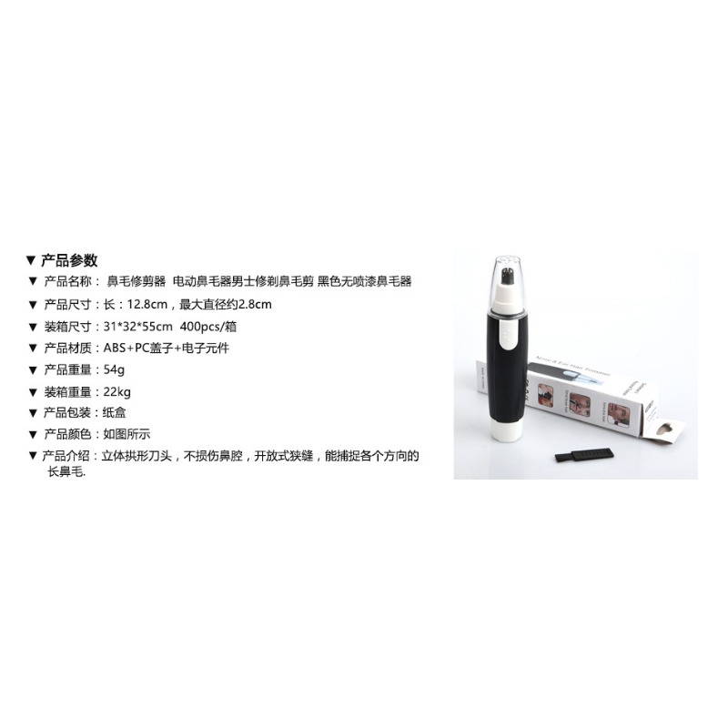 Električni trimer za dlačice u nosu i ušima, pogodan i za muškarce i za žene, sa elegantnim crnim dizajnom bez farbanja