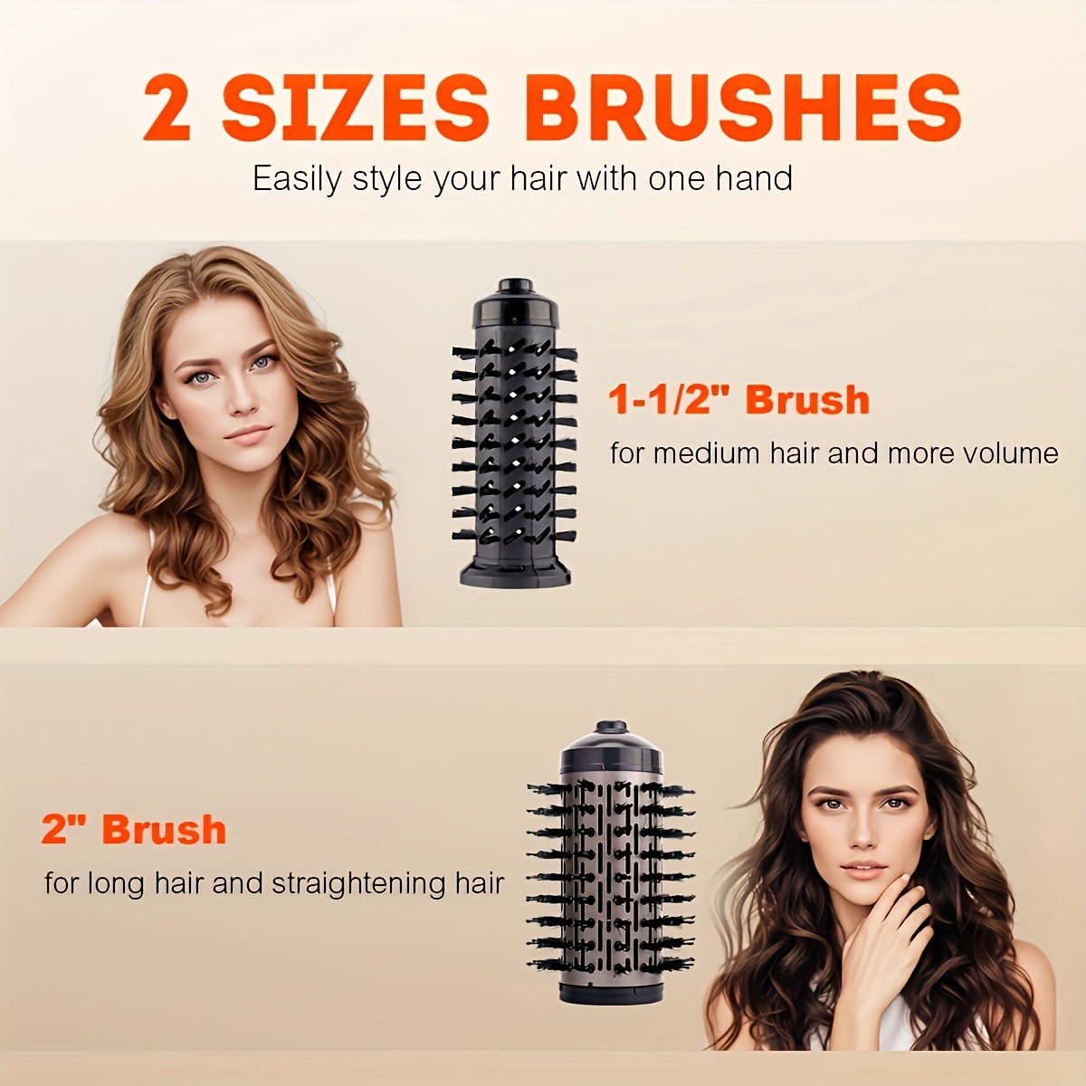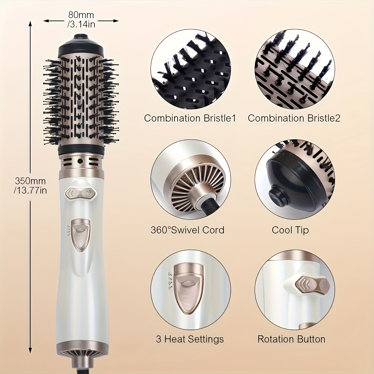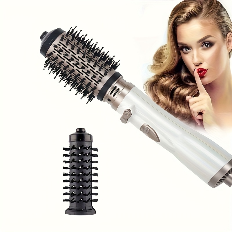 Evropski standard 3-u-1 fen sa toplim vazduhom, rotirajući fen sa 2 zamenjive glave četke, za ravnanje, sušenje i uvijanje sa 3 podešavanja grejanja, alat za oblikovanje kose, četka za uvijanje, četka sa toplim vazduhom, fen za dodavanje volumena, četka za hemijsko uvijanje