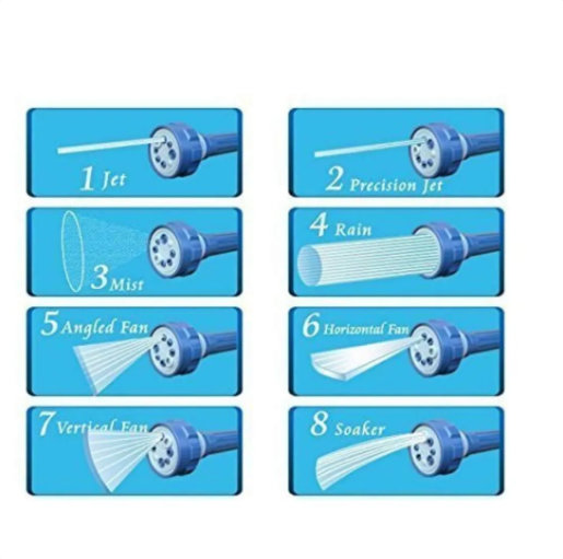 8 podesivih funkcija mlaznica : mlaz, precizni mlaz, magla, kiša, pljusak, ugaoni mlaz, horizontalni i vertikalni mlaz