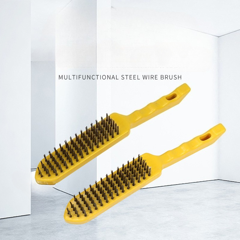 Industrijska četka za teške uslove sa dugom drškom i žutom plastičnom ručkom – otporna na rđu, pogodna za čišćenje roštilja, kotlova, šporeta, otporna na habanje, četka za uklanjanje rđe i mrlja za kuću, radionicu, održavanje (potrebna montaža)