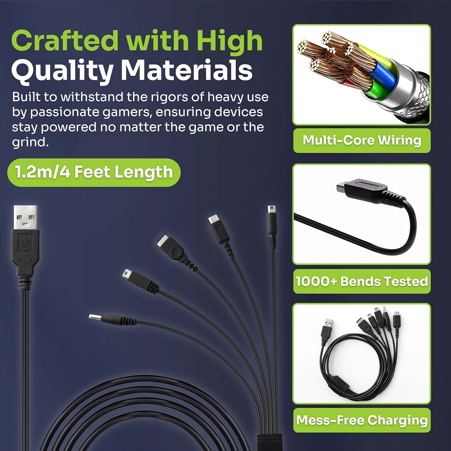 Ovaj univerzalni USB punjački kabl kombinuje pet funkcija, radi sa 3DS XL, 2DS, DSi XL, DS Lite, Game Boy Advanced SP, PSP i kontrolerima za Wii U. Jednostavno organizujte svoj set uz jedan kompaktni kabl koji je idealan za klasične i savremene ručne igraće uređaje