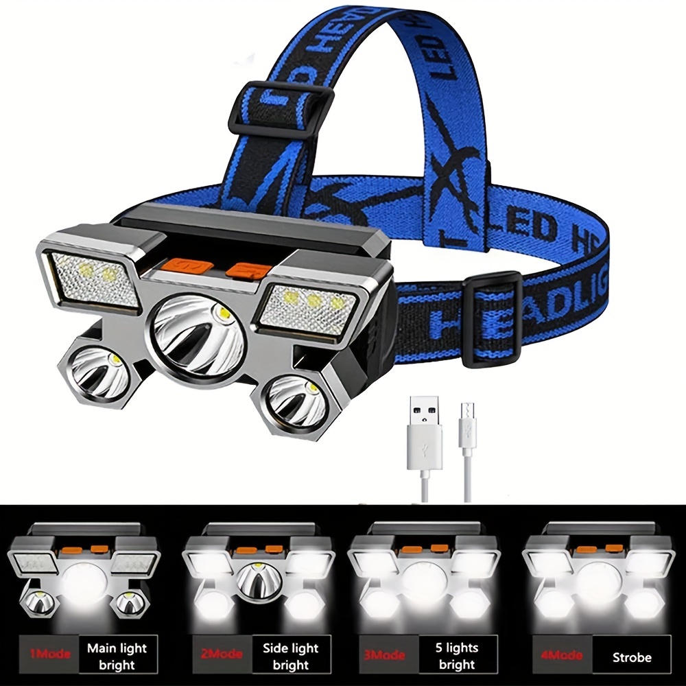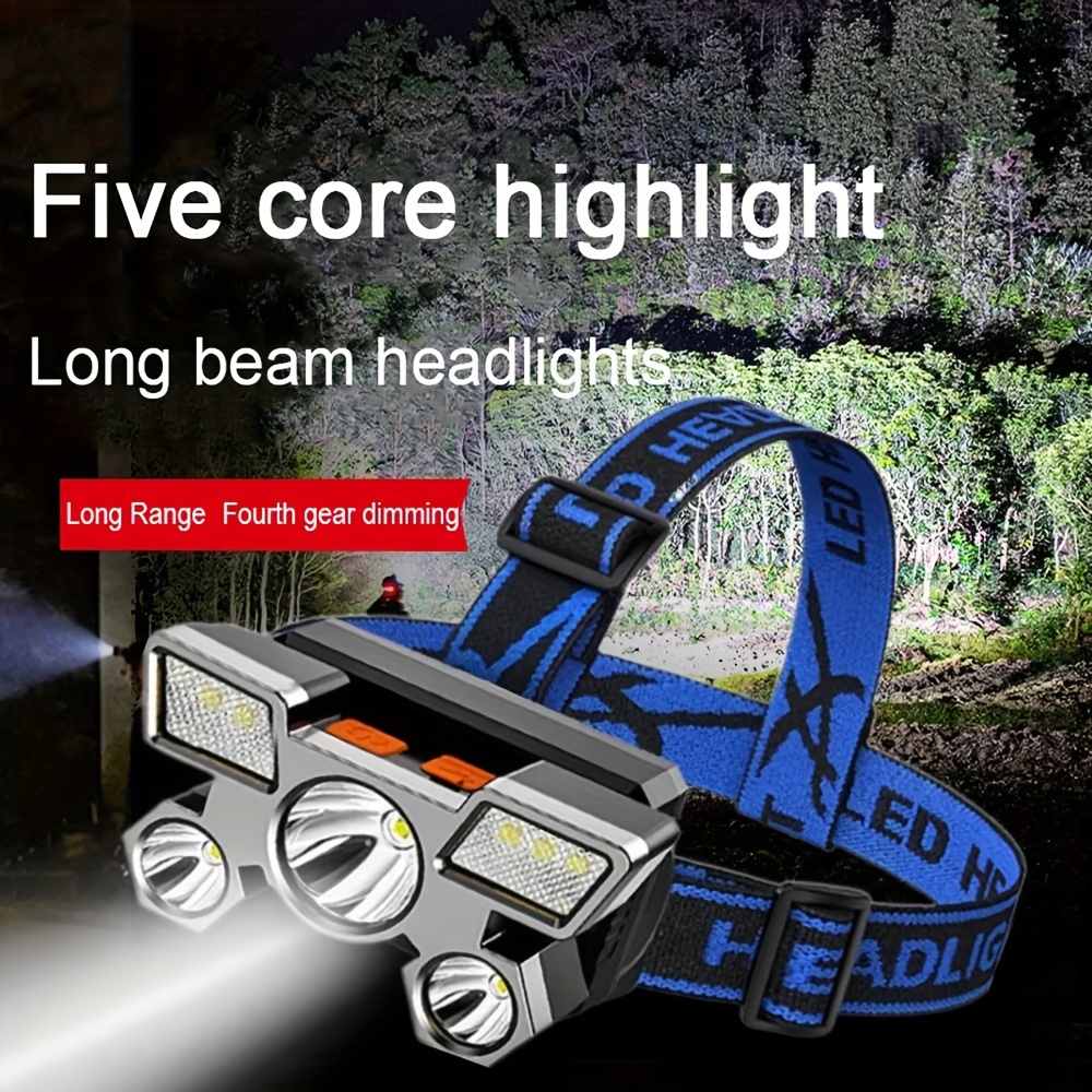 Jedna Punjiva Glava Svetiljke sa Pet Glava, Sa Super Svetlom 18650 Ugrađenom Baterijom, Idealna za Pecanje i Planinarenje