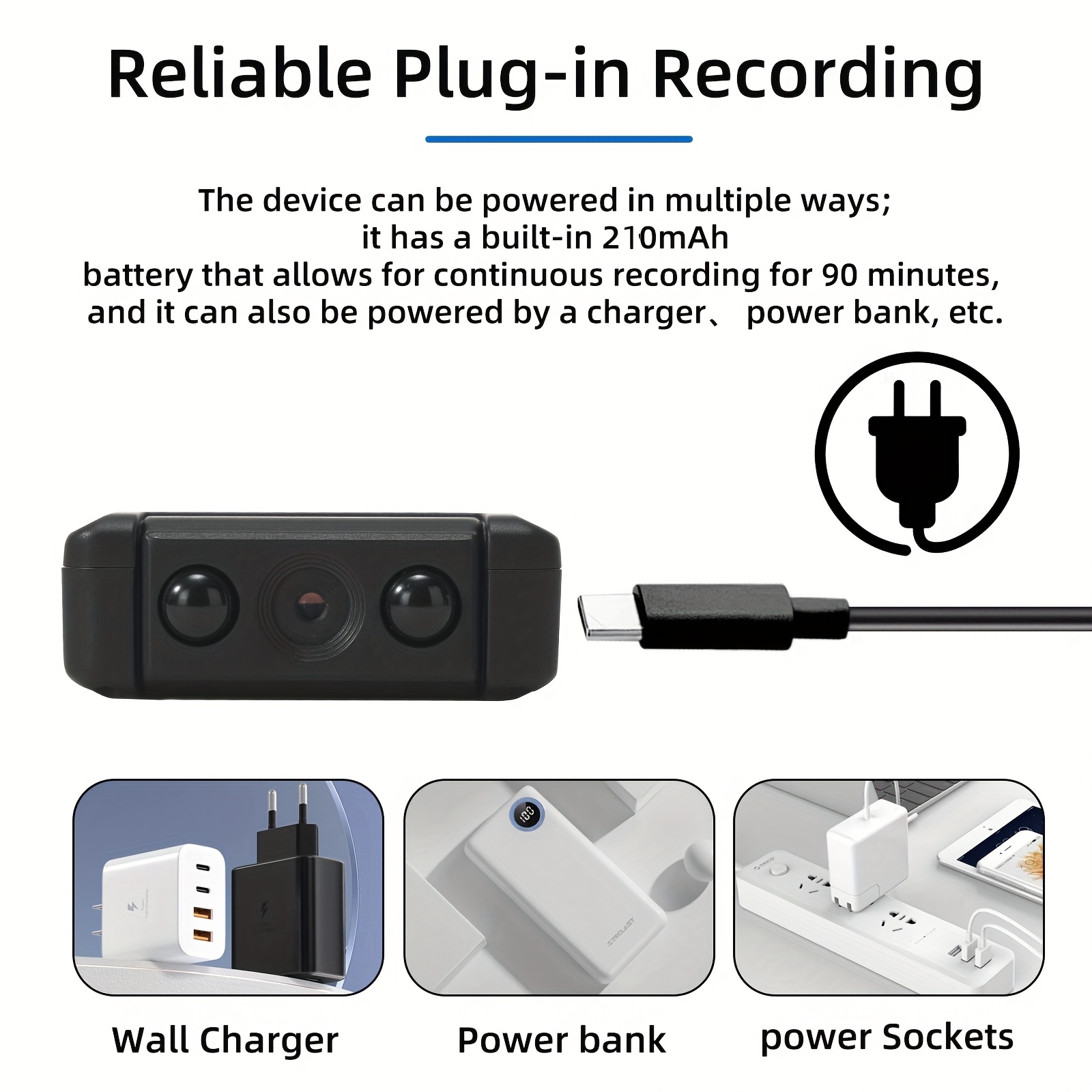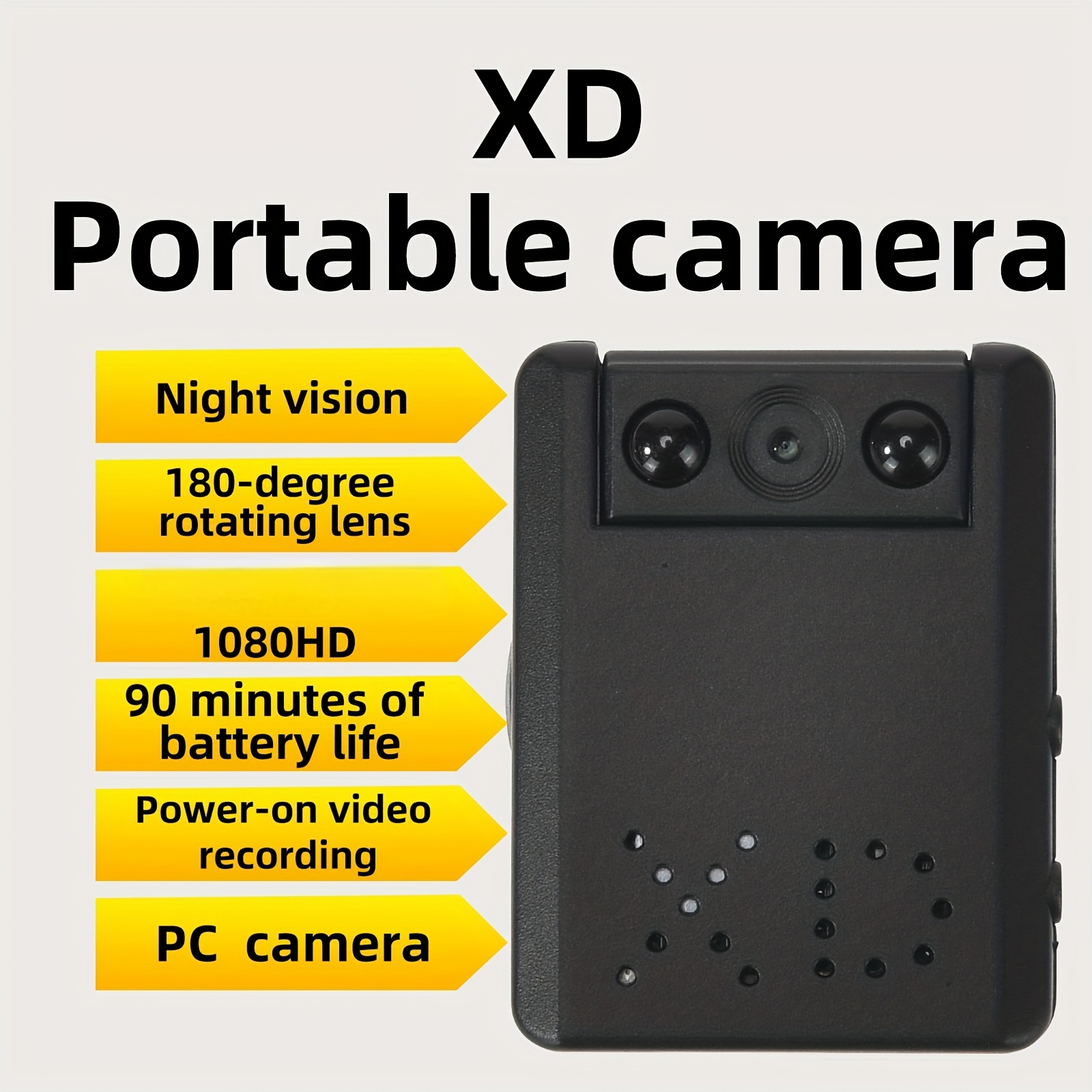 Kamera visoke definicije (Nanny kamera) sa objektivom koji se rotira 180°, 1080P sigurnosna kamera sa noćnim vidom i detekcijom pokreta, upravljanje jednim dugmetom, punjiva, pogodna za sastanke, intervjue, bezbednost, itd., ne zahteva WiFi.