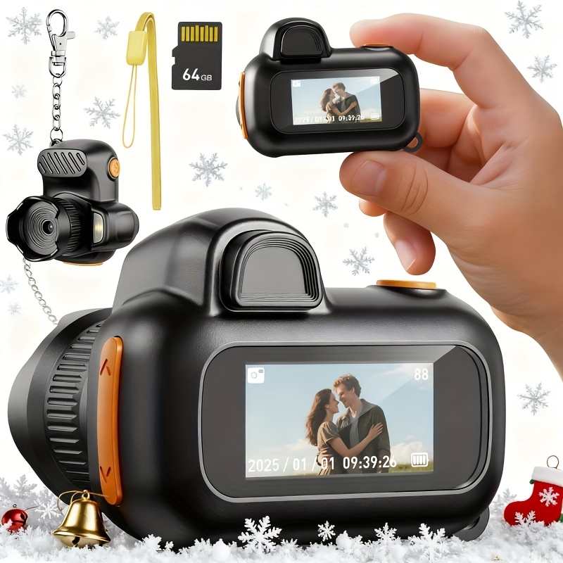 Kompaktni 1080P HD Video Rekorder – Digitalni Kamera u Obliku Privezka sa 64GB Memorijskom Karticom, 0.96-Inčnim HD Ekranom, Produženim Vek Trajanja Baterije i Ultra-Prenosivim Dizajnom, Idealan za Putovanja, Vlogovanje i Noćnu Fotografiju (Crna)
