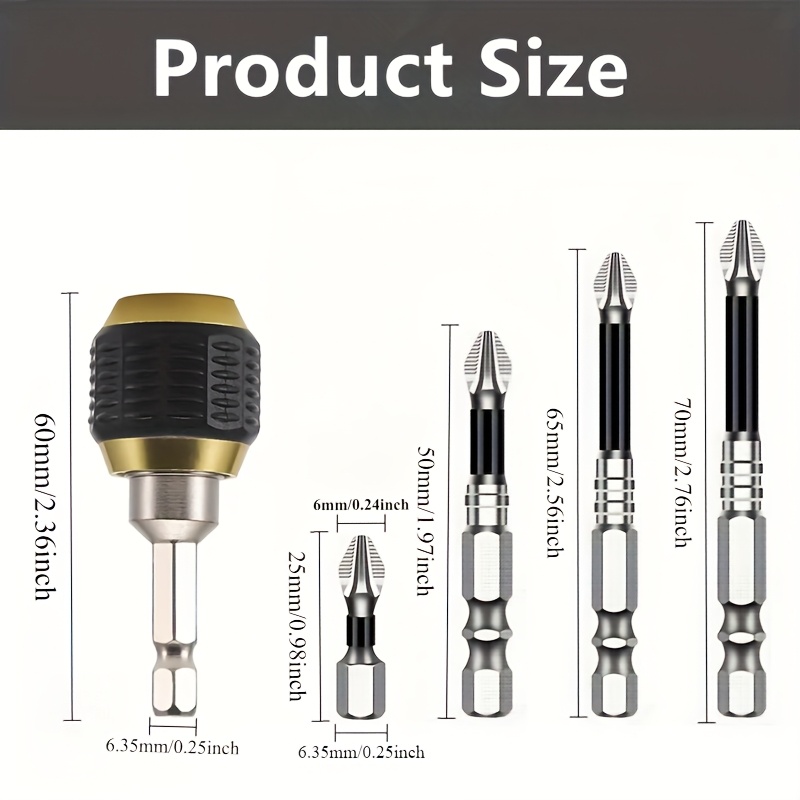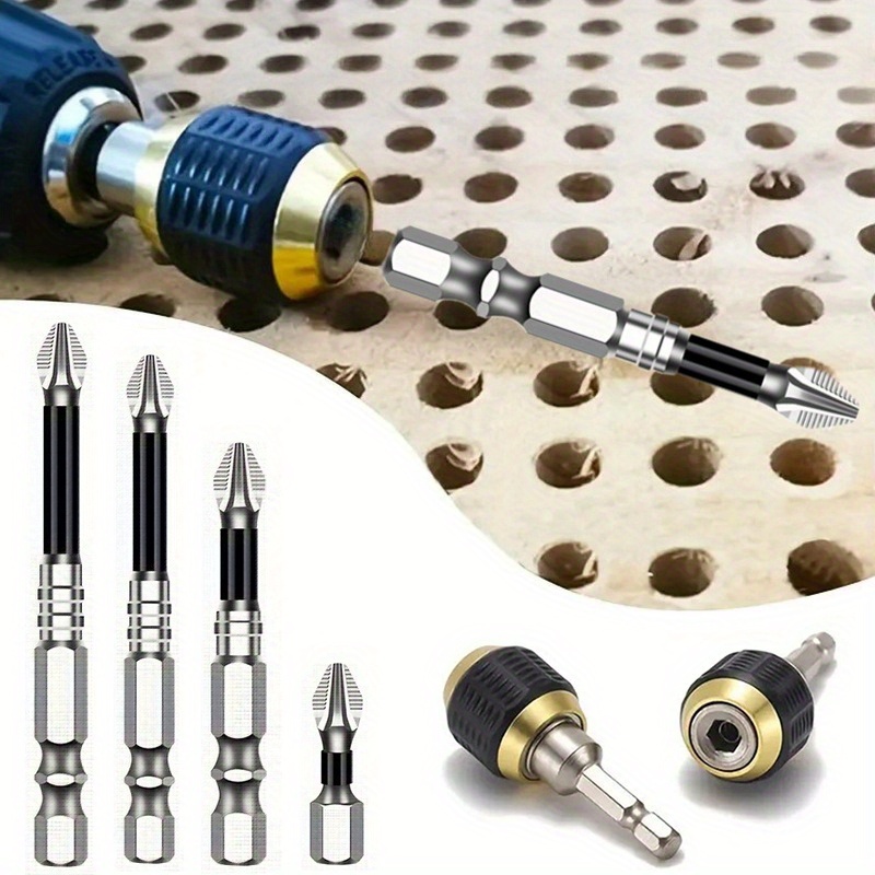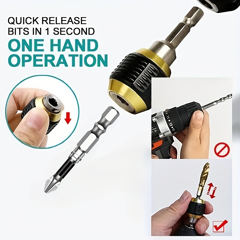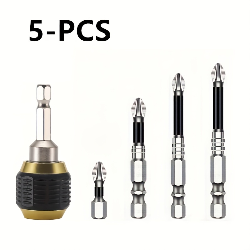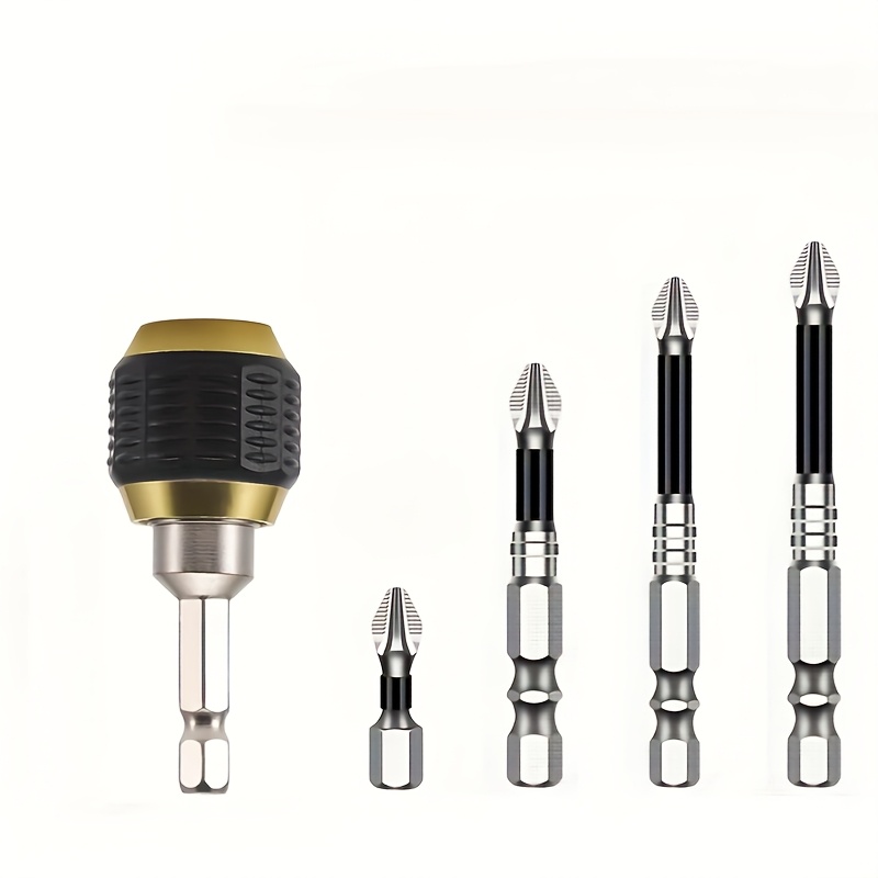 Komplet od 5 delova sa brzootpuštajućim steznim nastavkom i šrafcigerom sa heksagonalnom drškom, samoblokirajući spojnik za burgije sa šestougaonim držačem, set električnih šrafcigera sa heksagonalnim ručkama, čelični magnetni burgijski nastavci sa Phillips glavom, brza zamena spojnica sa pop-up heksagonalnim držačem za ručne bušilice