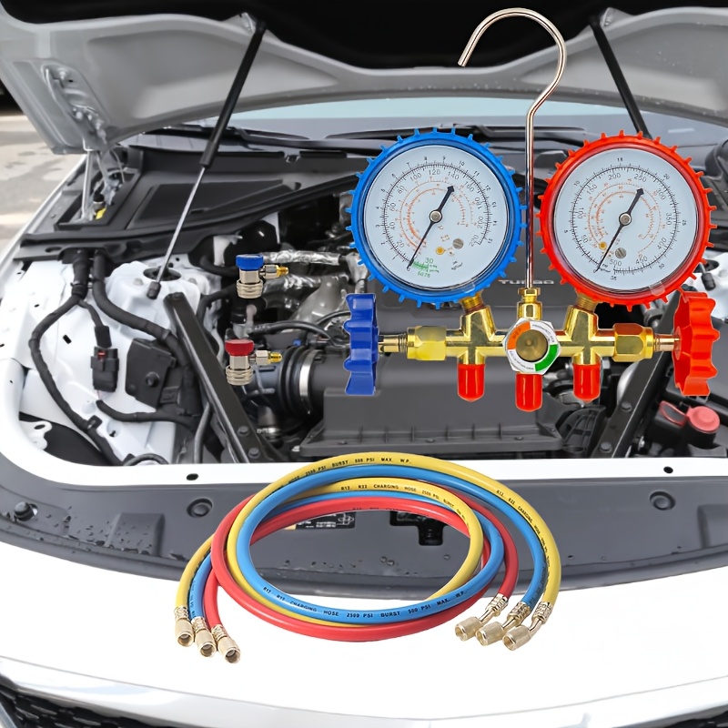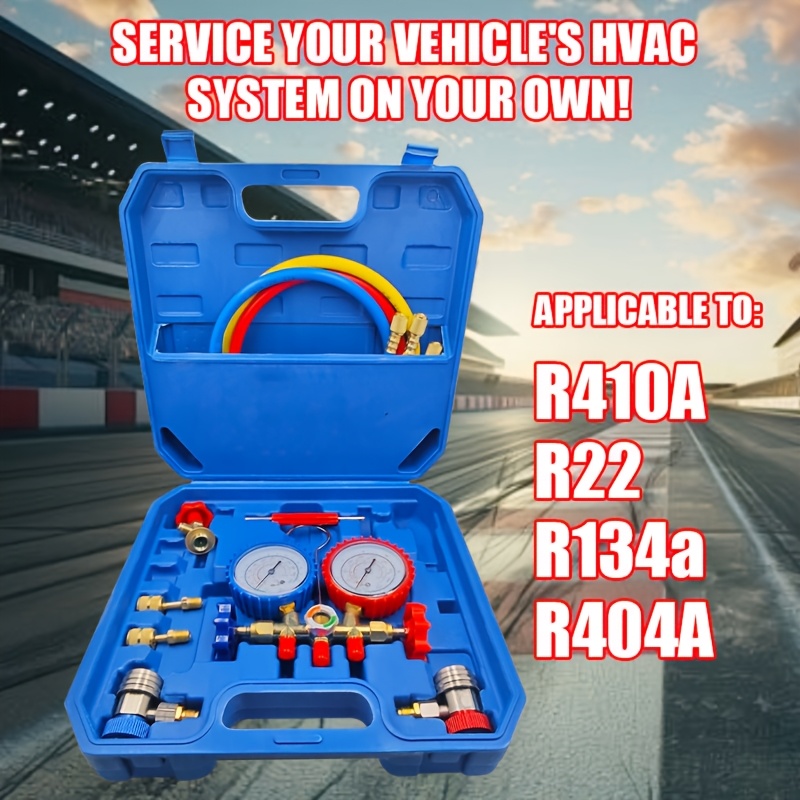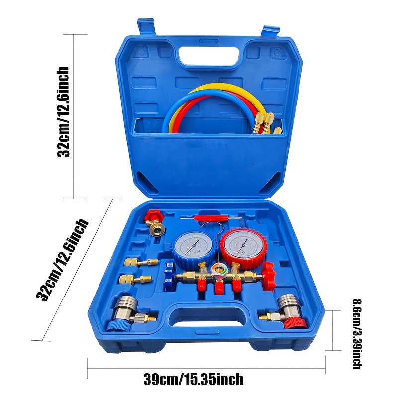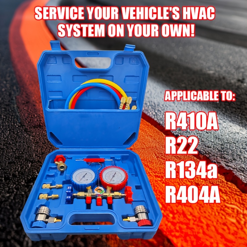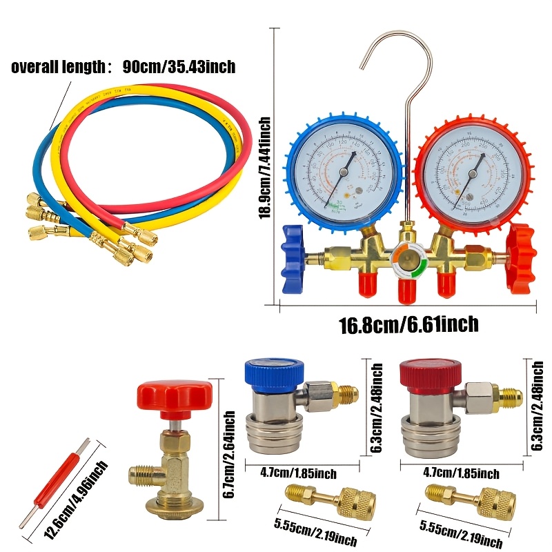 Kompletan set manometara za rasvrednjivač klima uređaja sa crevom i kukom, samostalan, ne treba struja, kompatibilan sa R404A, R12, R22, R134A, izdržljiv i precizan za dijagnostiku HVAC sistema